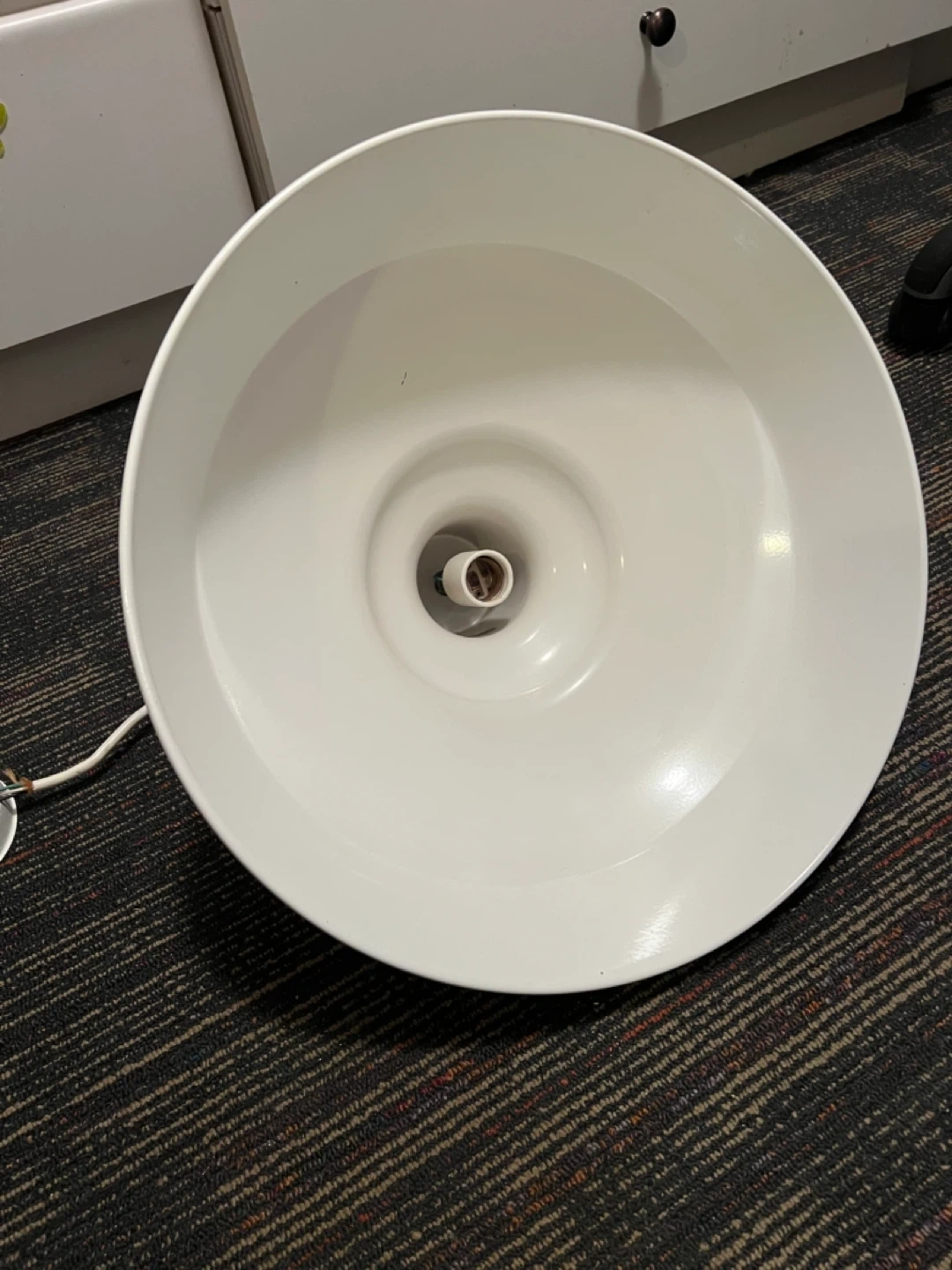 Selling a white pendant lamp. It's in great condition and ready to brighten up your space! Perfect for adding a touch of modern style to any room