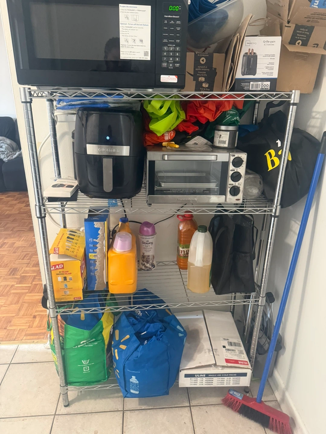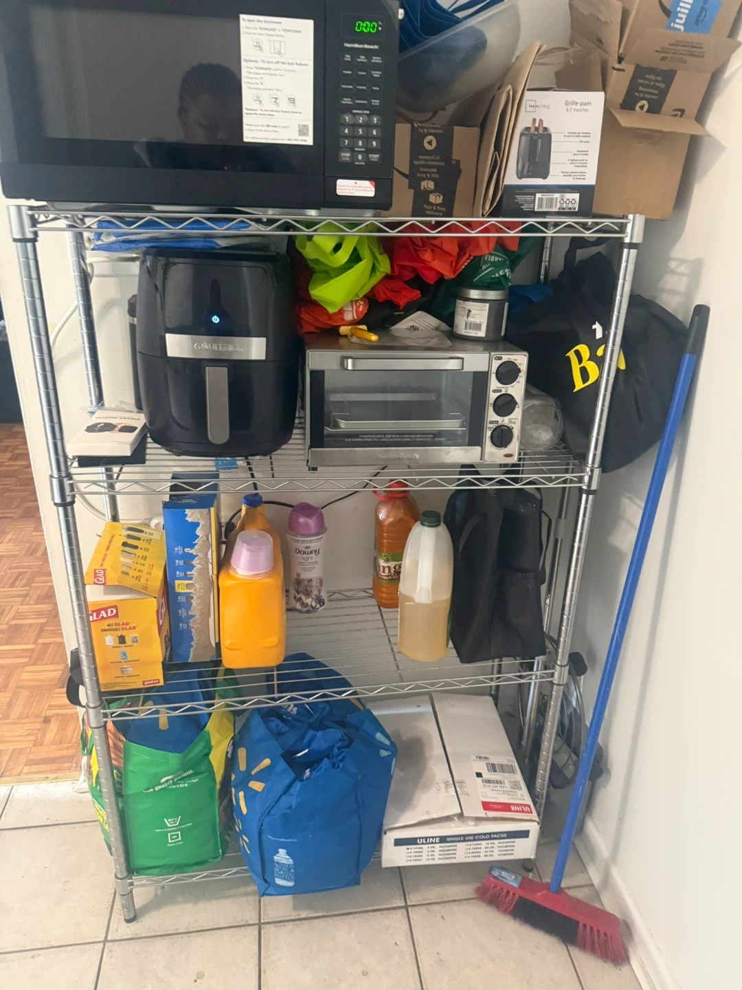 Selling a metal shelving unit. It's in great shape and ready to help organize your space! Perfect for the kitchen, garage, or anywhere you need extra storage