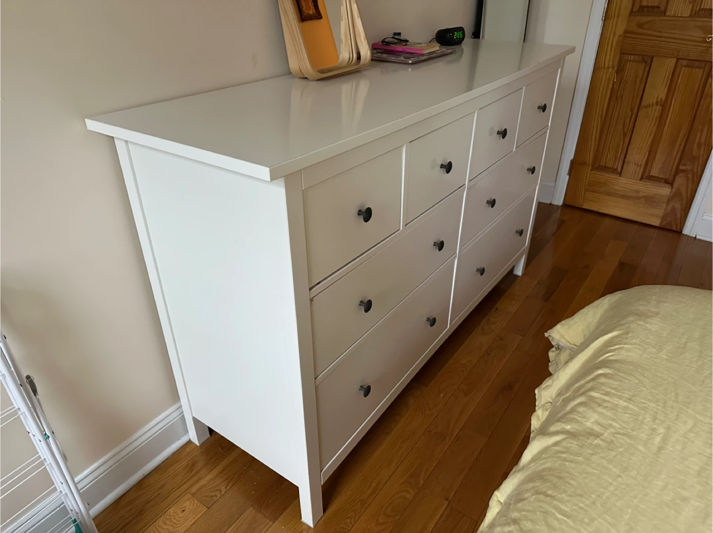 Selling a white IKEA Hemnes 8-drawer dresser. It's in great shape and ready for a new home. The dresser features a mix of small and large drawers, perfect for organizing all your clothes and belongings.