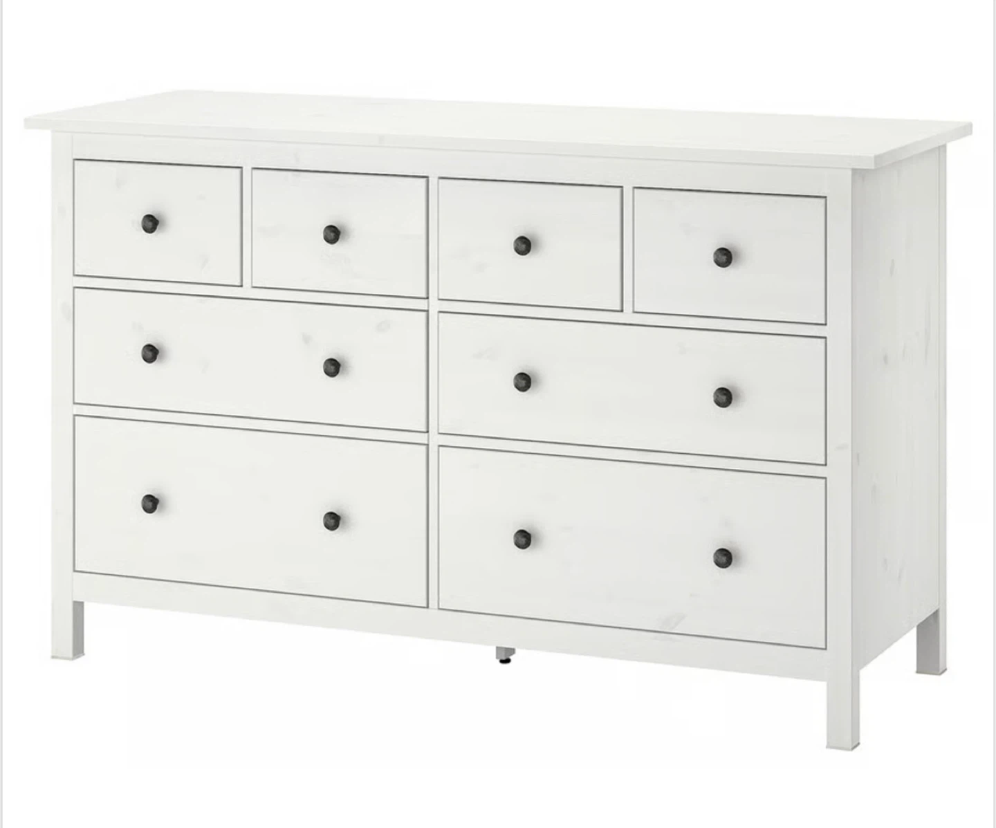 Selling a white IKEA Hemnes 8-drawer dresser. It's in great shape and ready for a new home. The dresser features a mix of small and large drawers, perfect for organizing all your clothes and belongings.