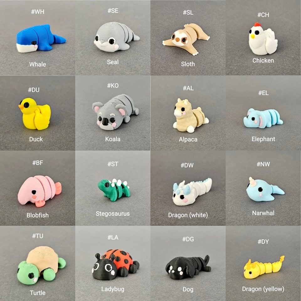 Articulated Mini Animals 3D Printed Fidget Toy | Desk Pet, Stres