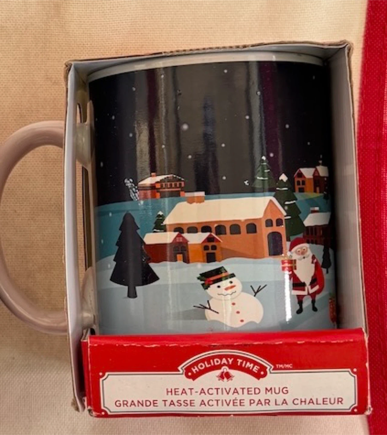 I'm selling a set of two brand new Holiday Time heat-activated mug, still in its original box! It's a fun and festive mug that changes its design when you add hot liquid. Perfect for the holidays or as a cozy addition to your mug collection