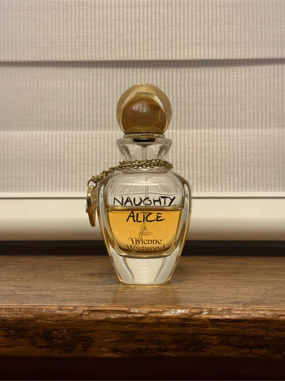Selling a bottle of Vivienne Westwood's Naughty Alice perfume! It's a lovely fragrance with a unique bottle design, complete with a bracelet with heart-shaped charm.