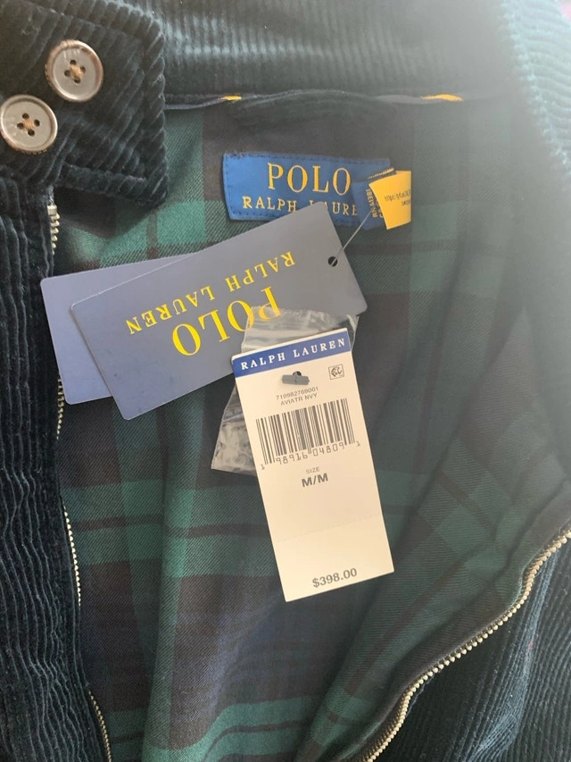I'm selling a new Polo Ralph Lauren corduroy bomber jacket. It's a stylish and comfortable jacket that's perfect for any occasion. This jacket has never been worn and still has the original tags, ensuring it's in pristine condition. Key Features: