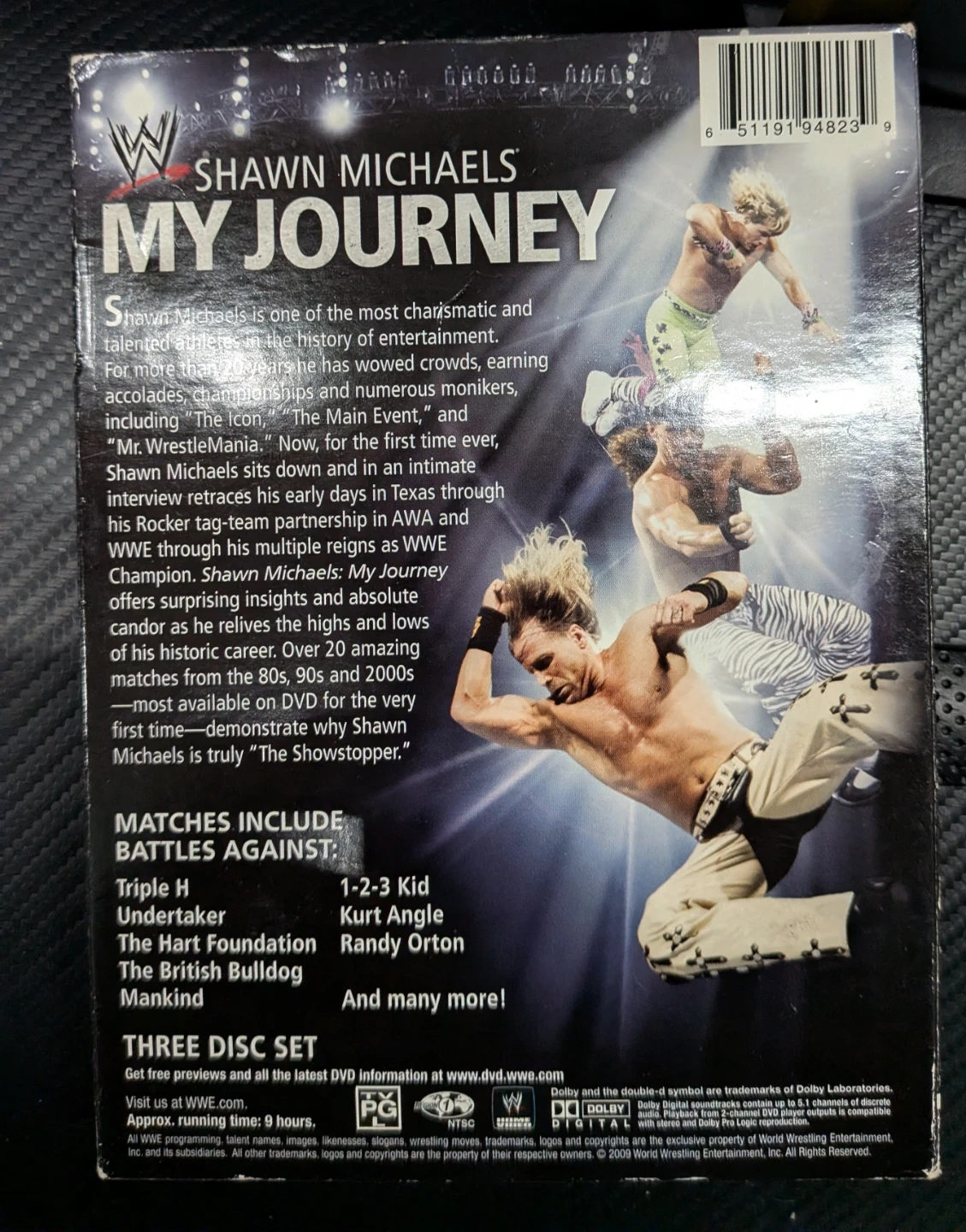 Buy & SellShawn Michaels: My Journey - Three Disc SetShawn Michaels: My Journey - Three Disc Set$15Selling a Shawn Michaels: My Journey DVD set. This is a three disc set that includes matches against Triple H, Undertaker, Kurt Angle, and more!ConditionLike newWHERE TO MEETCheck LocationView MapSELLERverifiedEricStuyvesant Town36428 reviews0 chats·0 favorites·0 viewsSEND CHAT TO SELLERHi Eric! I’m interested in your listing.Hi Eric! I’m interested in your listing.Get the Karrot app to chatSign In to chat