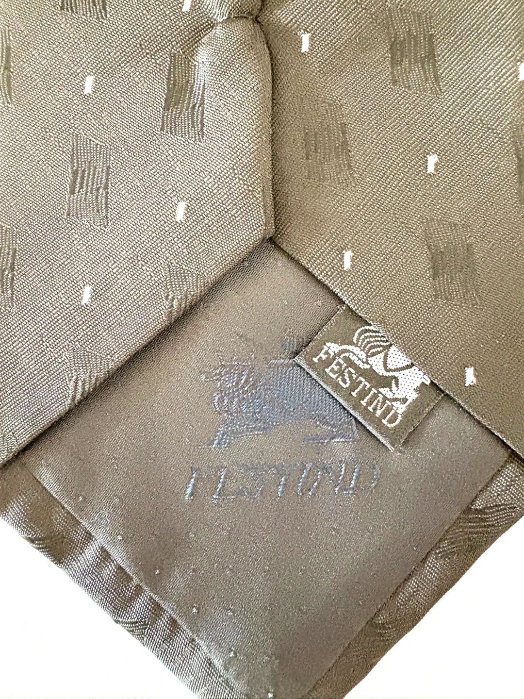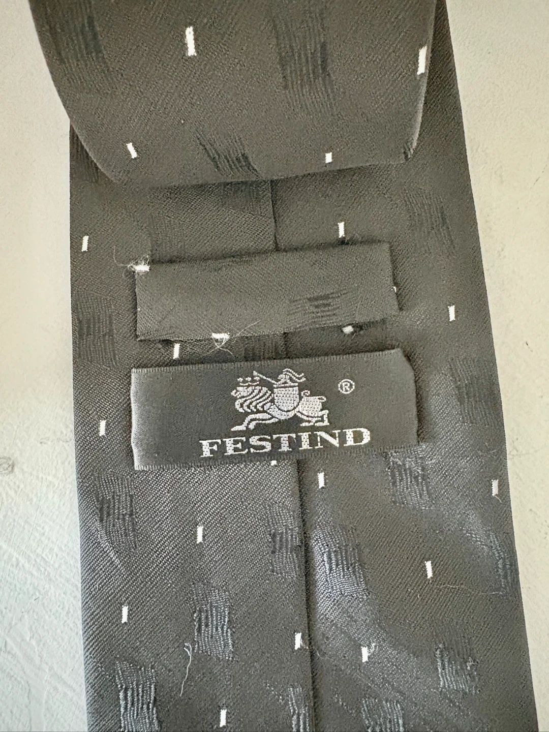 Festind tie in a stylish grey pattern! This necktie is perfect for adding a touch of sophistication to any outfit. The material feels nice and the pattern is quite unique