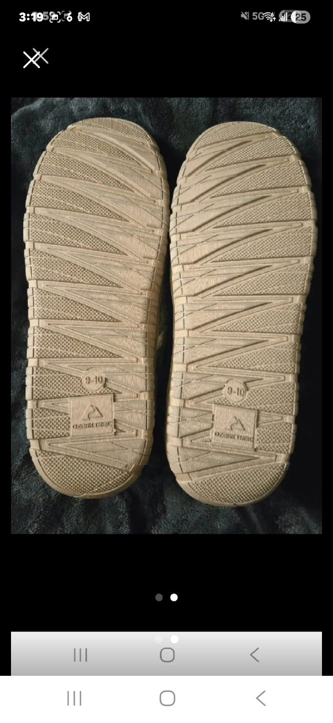 Ozark slippers in a camo pattern, perfect for keeping your feet warm and comfortable around the house! They are size 9-10.