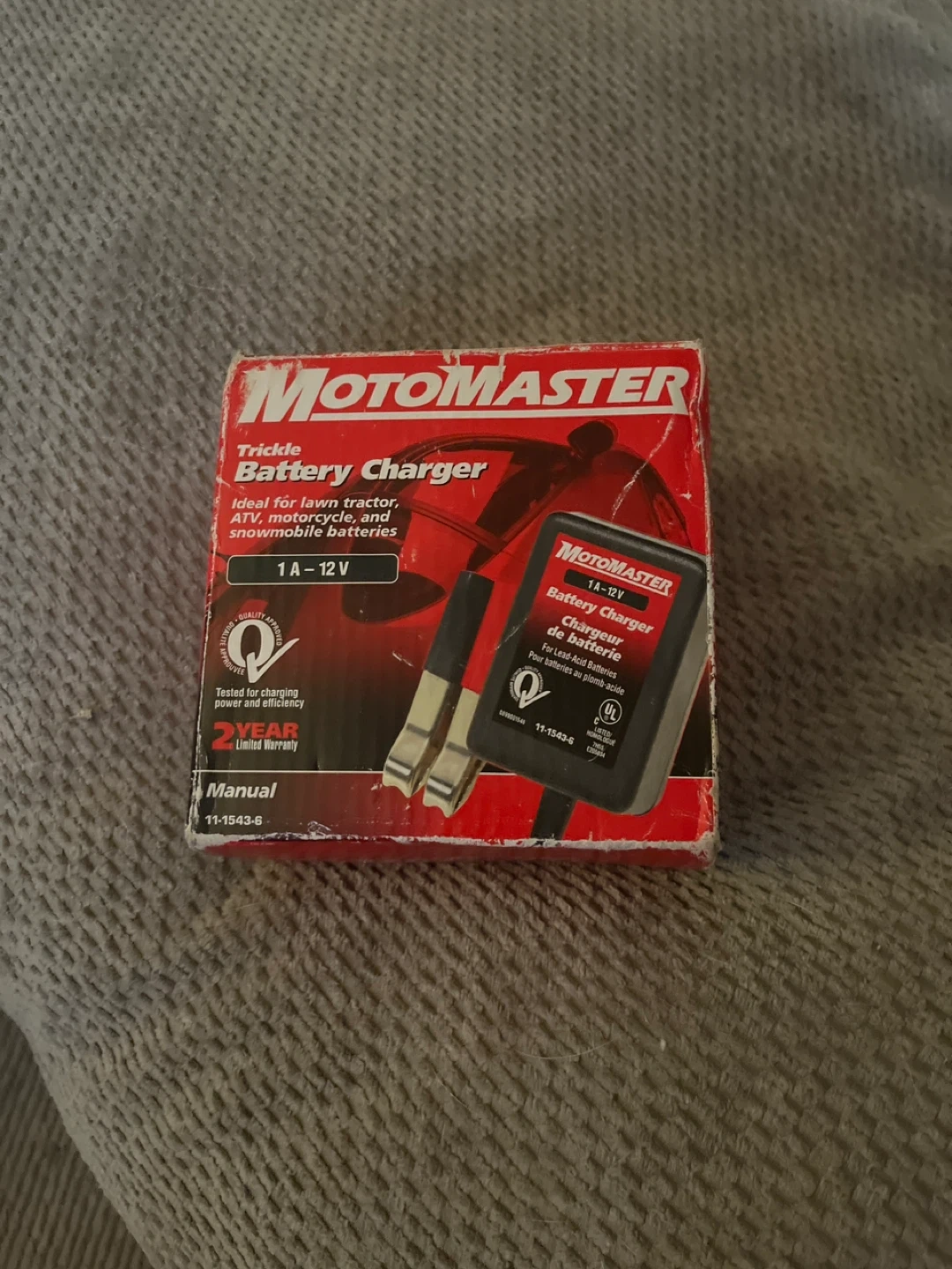 Selling a MotoMaster trickle battery charger, perfect for lawn tractors, ATVs, motorcycles, and snowmobile batteries. It's a 1A-12V charger and comes with a 2-year limited warranty. Also includes the manual Brand new in box never used