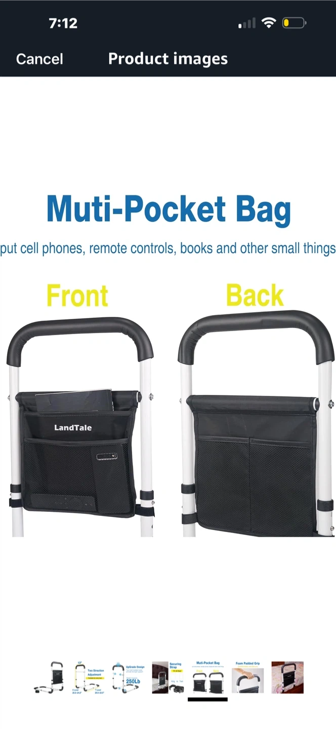 LandTale Bed Assist Rail with Multi-Pocket Bag π₯