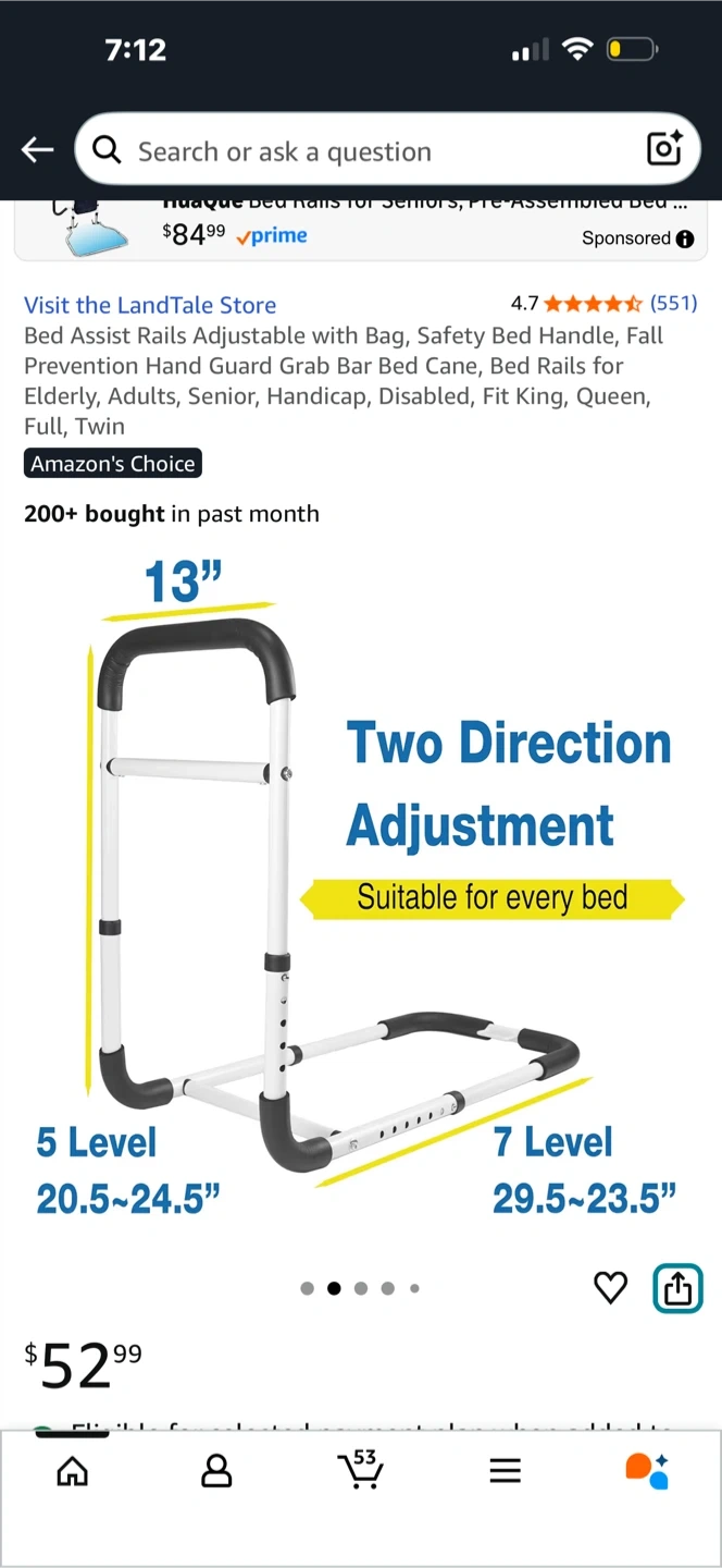 This LandTale bed assist rail is adjustable and comes with a handy multi-pocket bag! It's designed for safety and fall prevention.