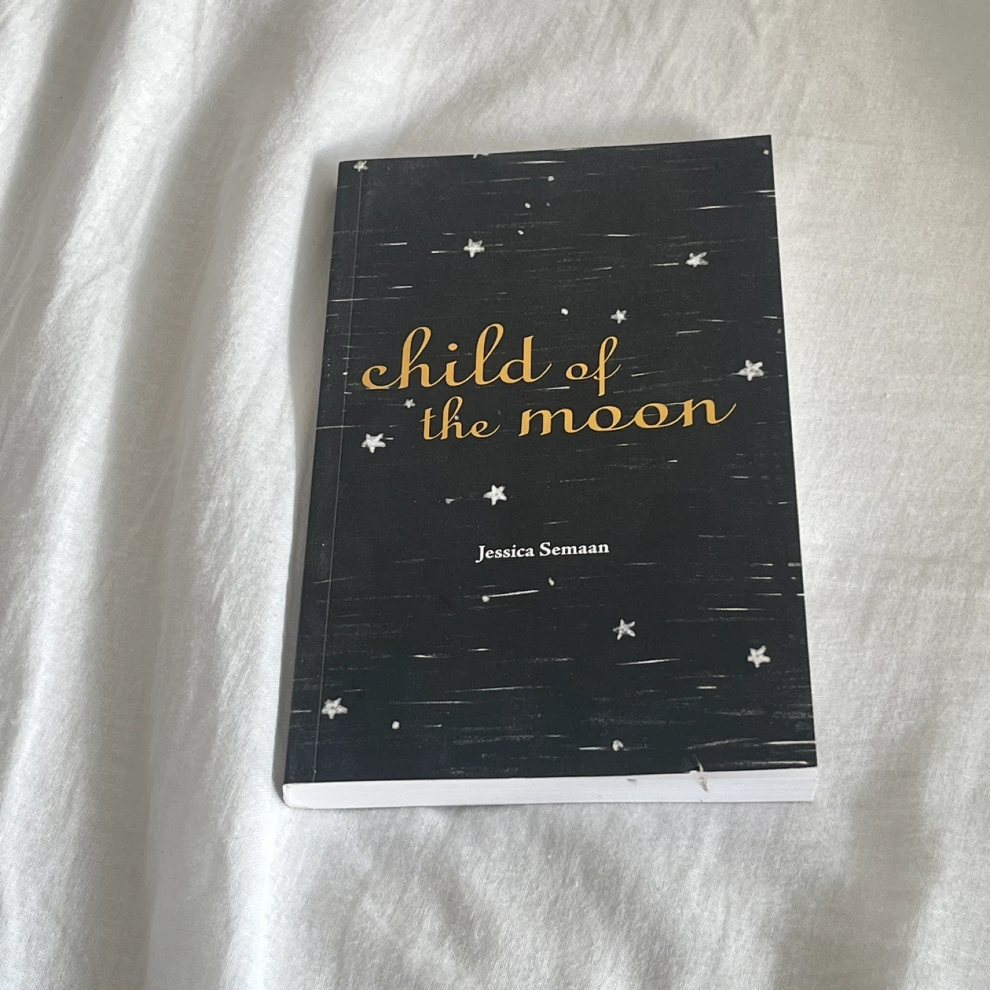 Selling a copy of "Child of the Moon" by Jessica Semaan! It's a poetry collection that explores themes of family, trauma, and healing. A powerful reflection on a journey through despair and unconditional love