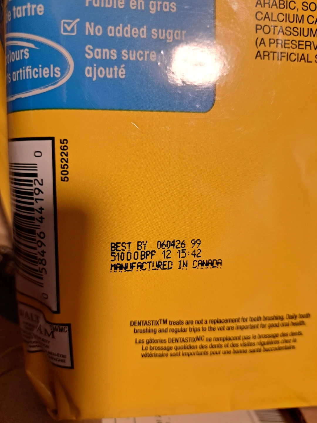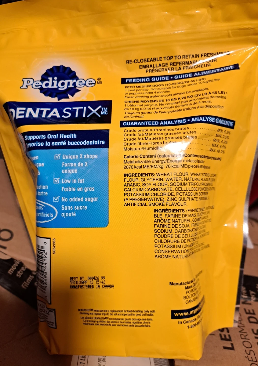 Pedigree Dentastix Daily Original dog treats. These treats are clinically proven to reduce plaque and tartar buildup. They also have no added sugar and are low in fat.