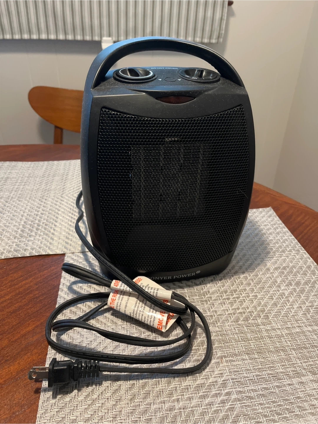 Selling a Donyer Power personal space heater in black. It's in good condition and ready to keep you warm! It has a handle for easy portability and adjustable settings