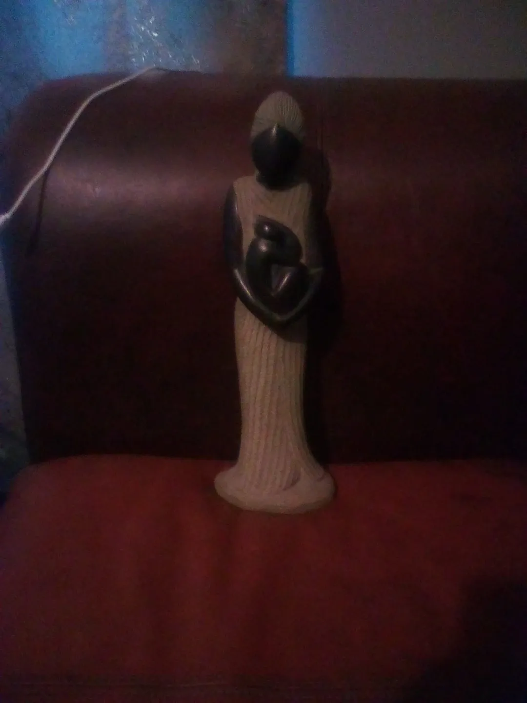 This is a beautiful sculpture of a woman holding a child. It is in excellent condition and would be a great addition to any home Hand sculpted from Hatti The sculpture has a bit of weight to it
