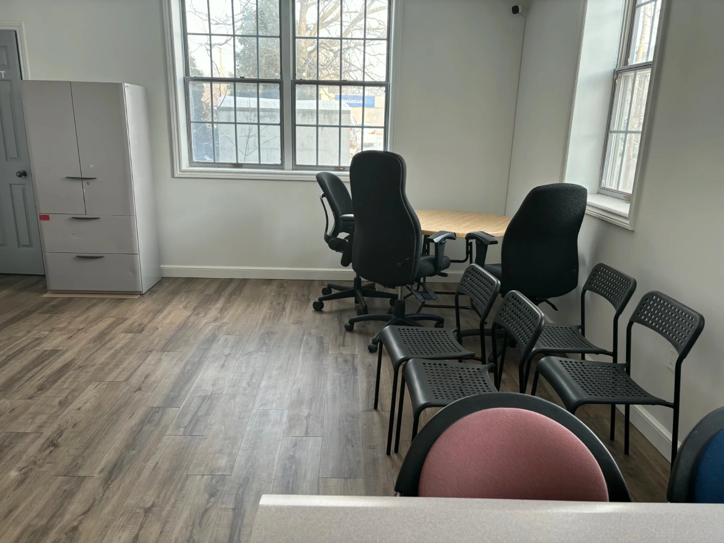I'm selling a set of office chairs and a cabinet. They're in good condition and ready for a new office space or home office setup