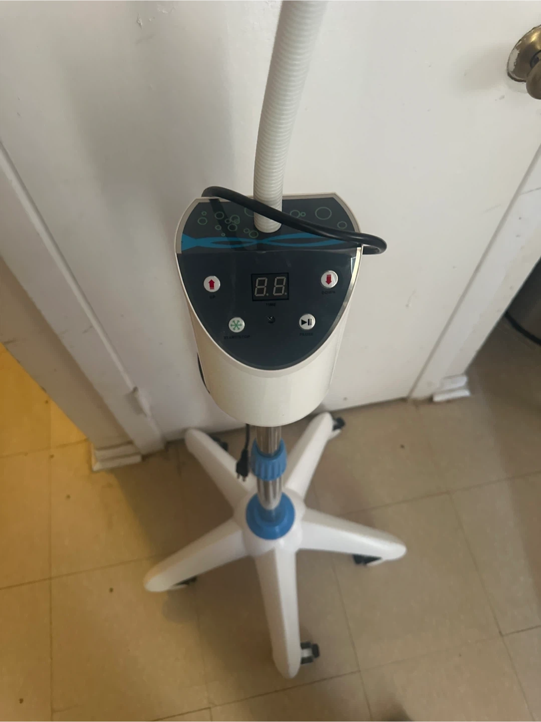 Selling a teeth whitening machine in good condition. It features a flexible arm and adjustable height for easy use. The machine has a digital display and simple controls. Great for professional or home use!