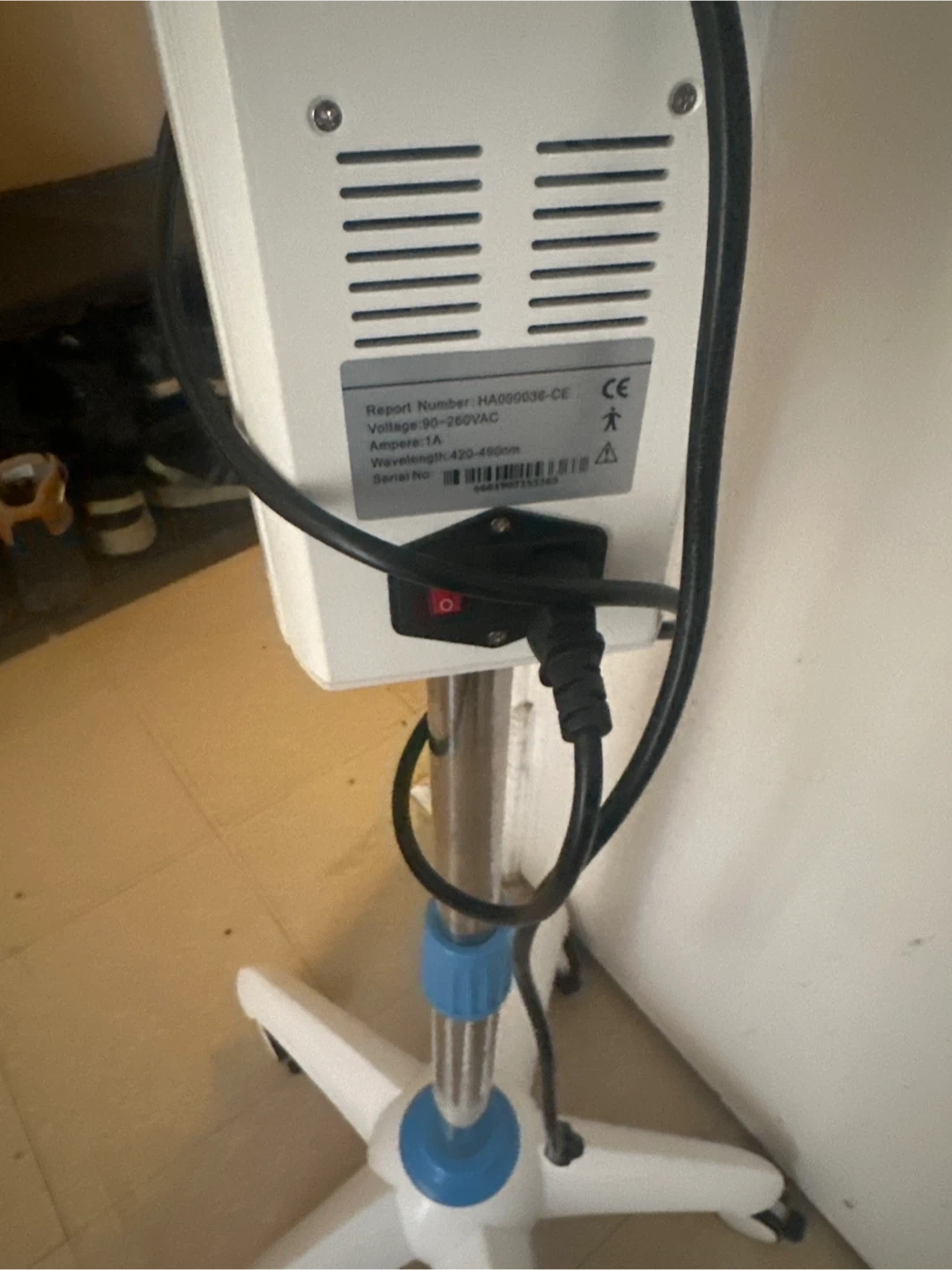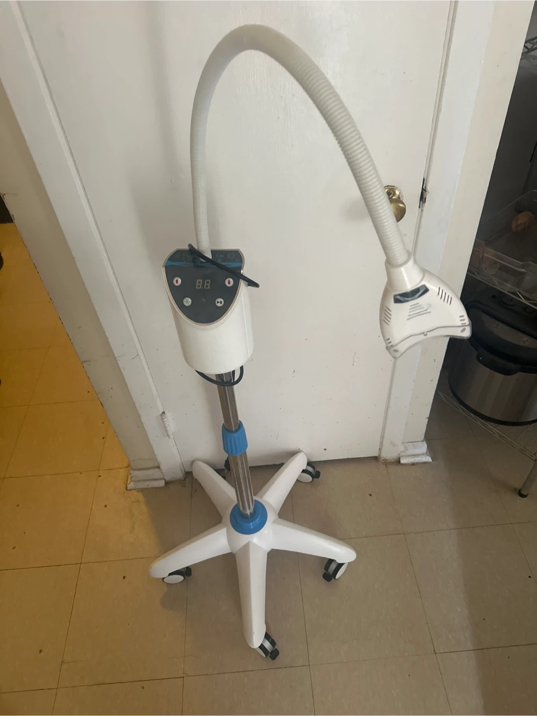 Selling a teeth whitening machine in good condition. It features a flexible arm and adjustable height for easy use. The machine has a digital display and simple controls. Great for professional or home use!
