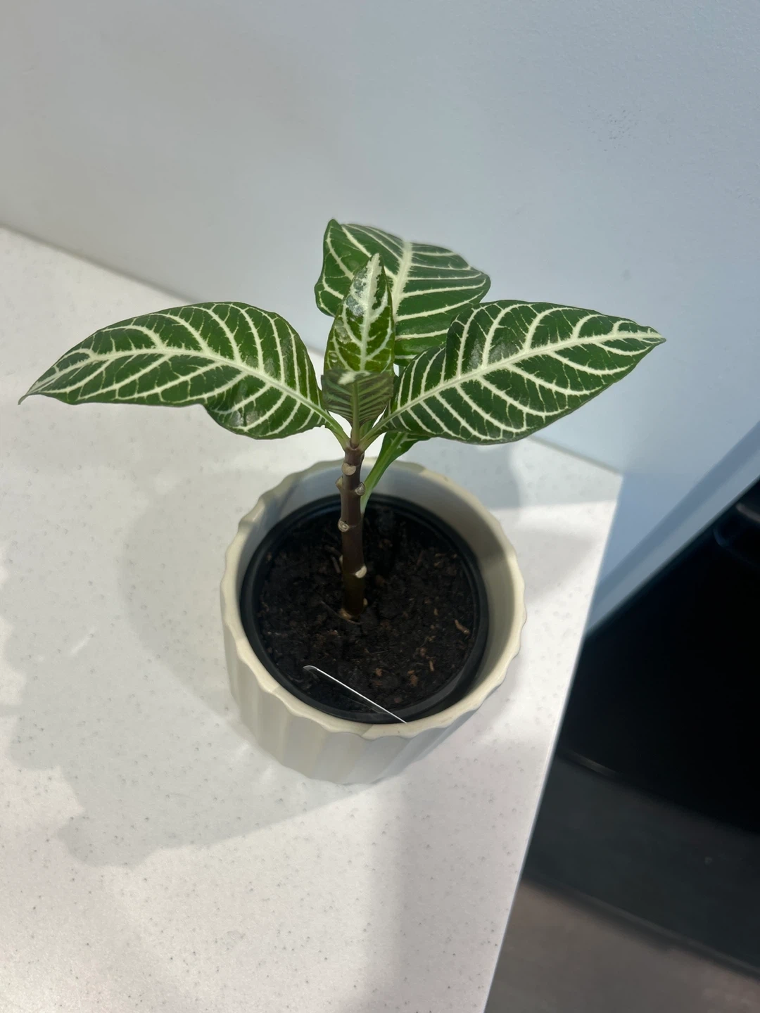 Selling a lovely Zebra Plant (Aphelandra) in a cute white pot! It's a beautiful addition to any indoor space and adds a touch of greenery to your home.