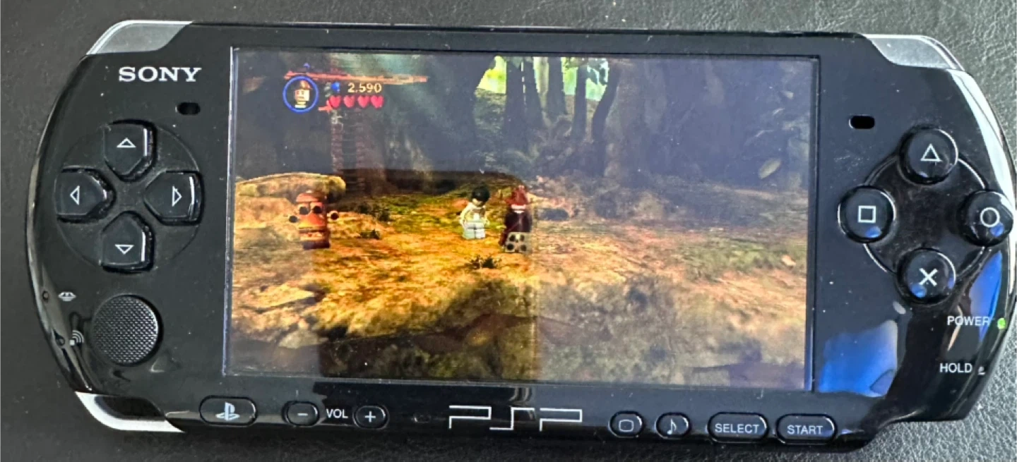 Selling a black Sony PSP 3001 handheld console! It comes with a charger and three games: Patapon, Lumines, and Lego Indiana Jones. Perfect for some retro gaming on the go.