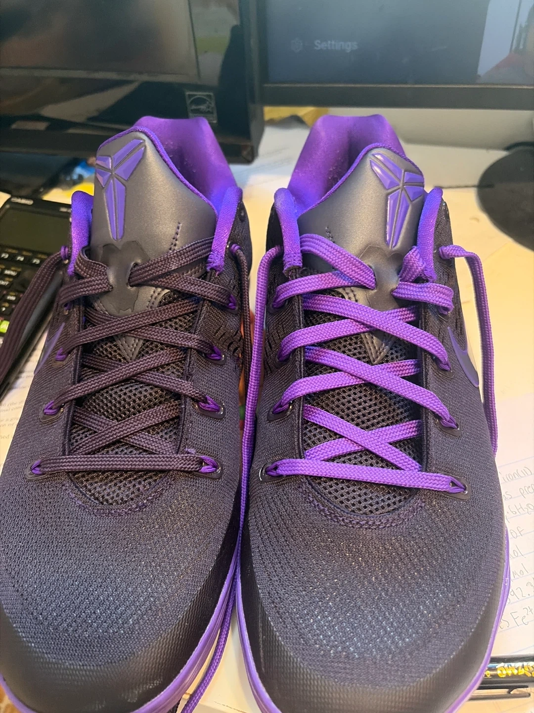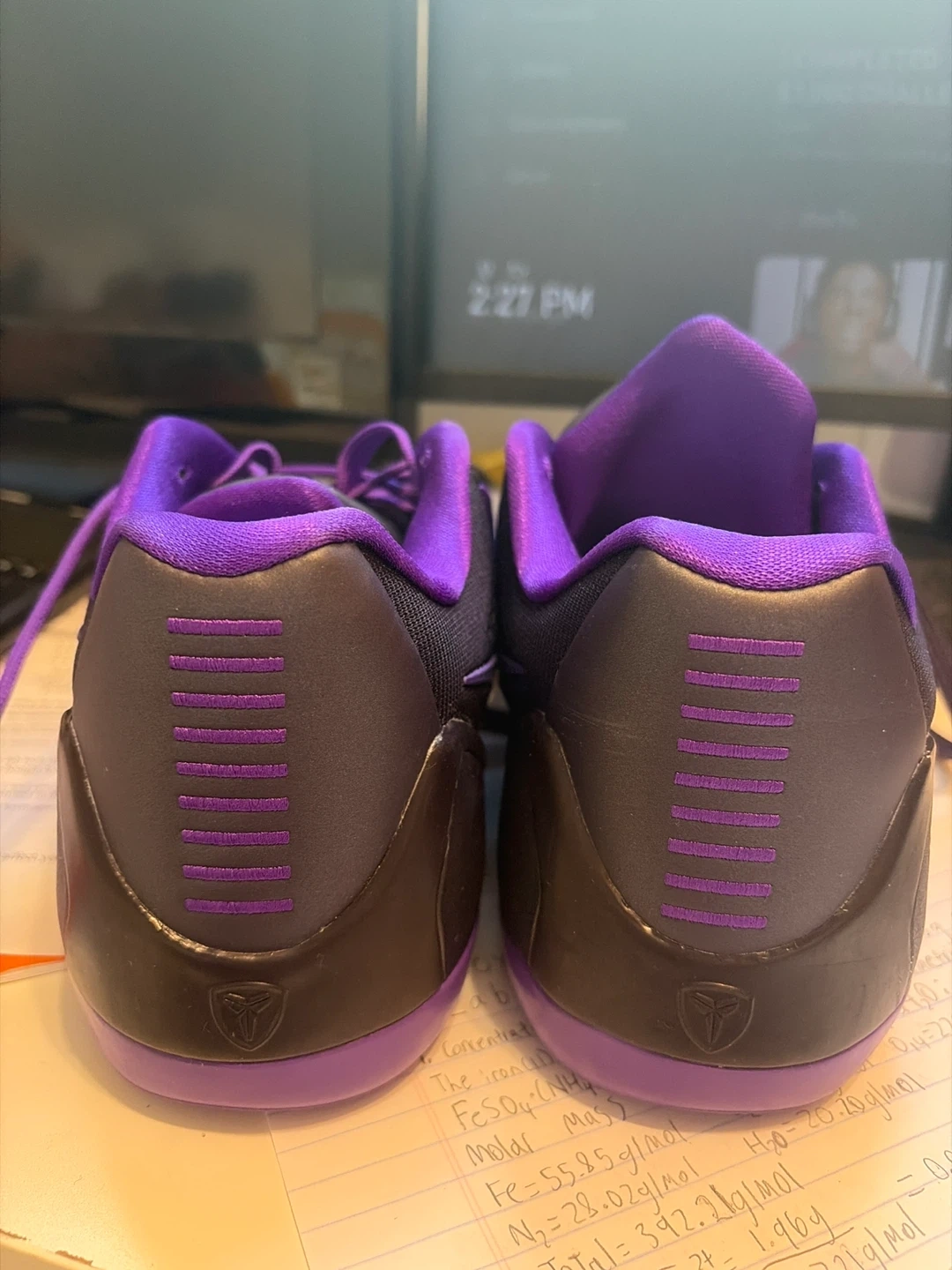 Selling a pair of Nike Kobe Mamba Rage basketball shoes in a cool purple and black colourway! These shoes are in great shape and ready for the court or just kicking around town. They feature the iconic Kobe logo and a comfortable design. Perfect for any basketball fan or sneaker enthusiast!