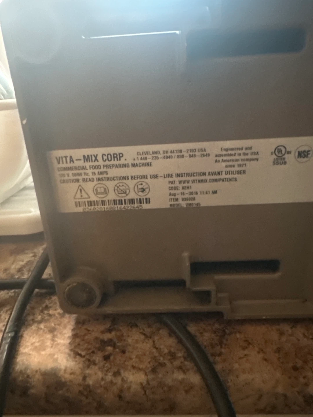 Selling a Vita-Mix Corp. Commercial Food Preparing Machine, model VM0145. It's not in working condition because it needs the motor replaced. Warranty expired. Please see photos for details