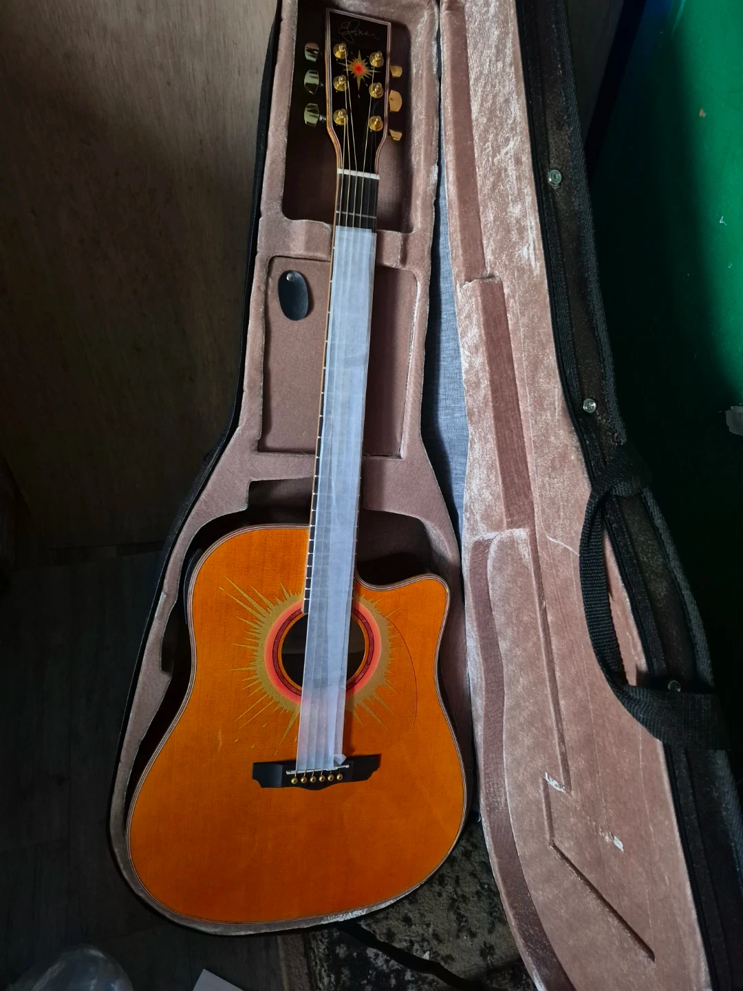 Selling an Esteban Coral Sun Limited Edition steel string cutaway guitar. It comes with its case and a certificate of authenticity. The guitar features a unique sun design and is in great condition
