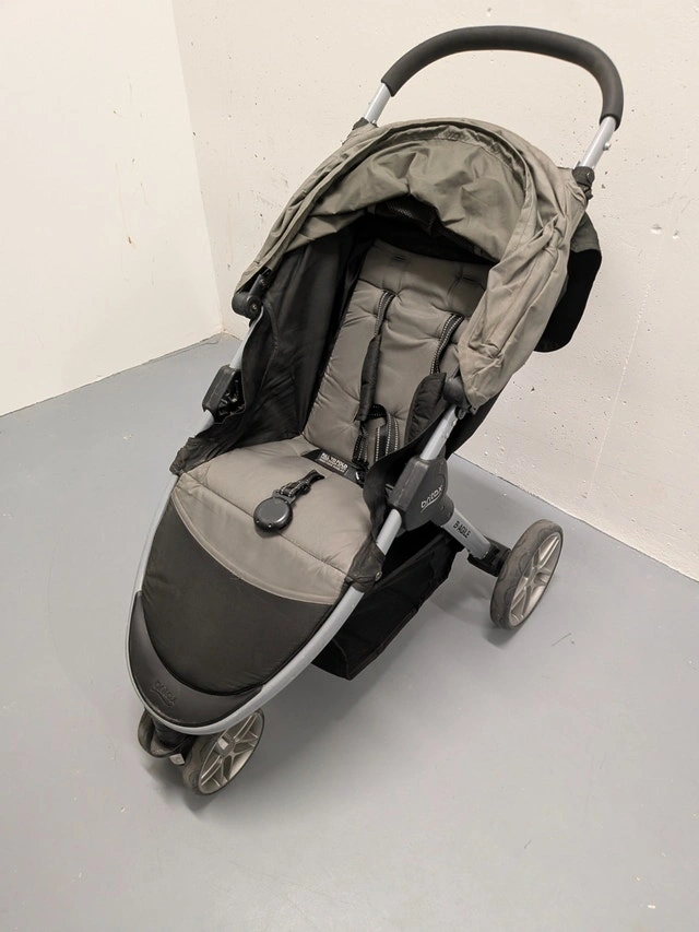 Stroller in great condition. Lightweight, maneuverable and super simple to fold, the B-Agile 3 Stroller is easy to carry and navigate while you’re out and about. Only weighs 16.5 lbs so pushing and carrying are a breeze. Folds quickly with only one hand so transitions are easy and swift. The 3-wheel configuration with swivel front wheels gets you through any tight spots that come your way. Compatible with all Britax infant car seats so you can create your ideal travel system.