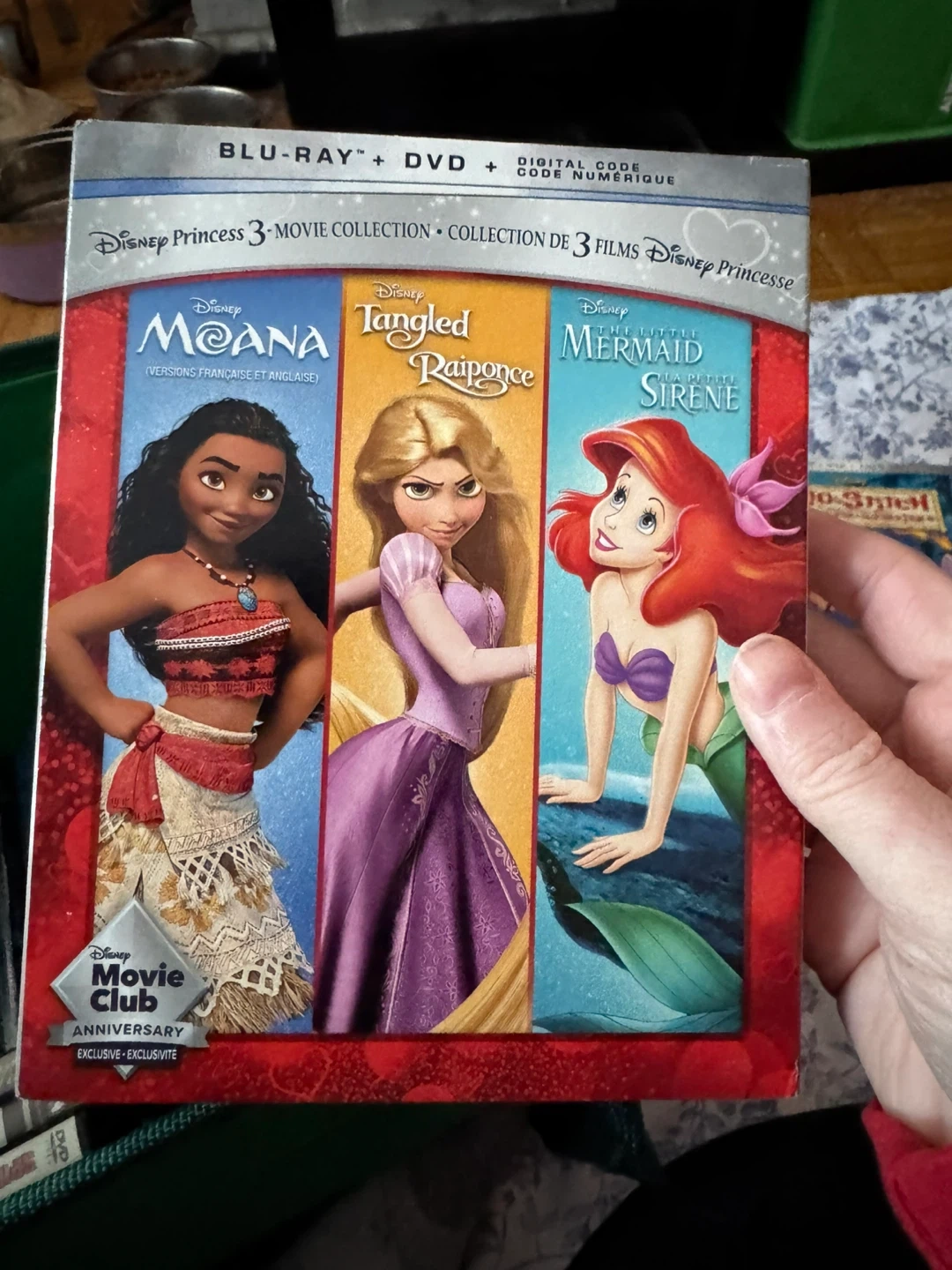 Selling a Disney Princess 3-Movie Collection on Blu-ray and DVD! This includes Moana, Tangled (Raiponce), and The Little Mermaid (La Petite Sirene). A great collection for any Disney fan