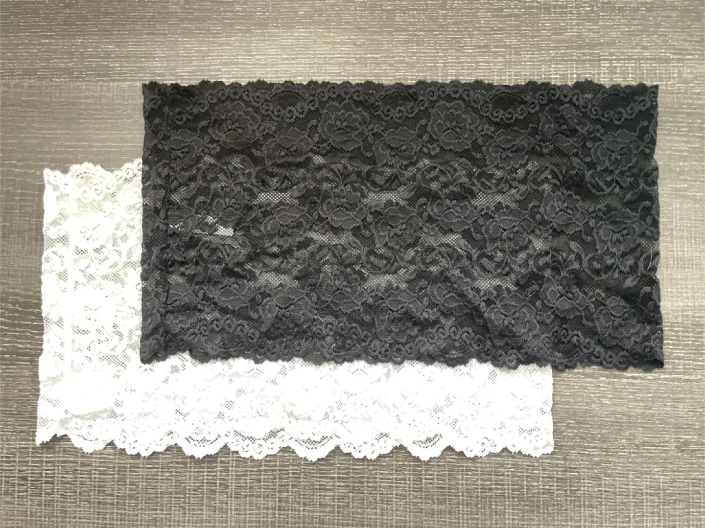 Two lace modesty bandeau tops in black and white. Perfect for layering. Comfortable stretch.