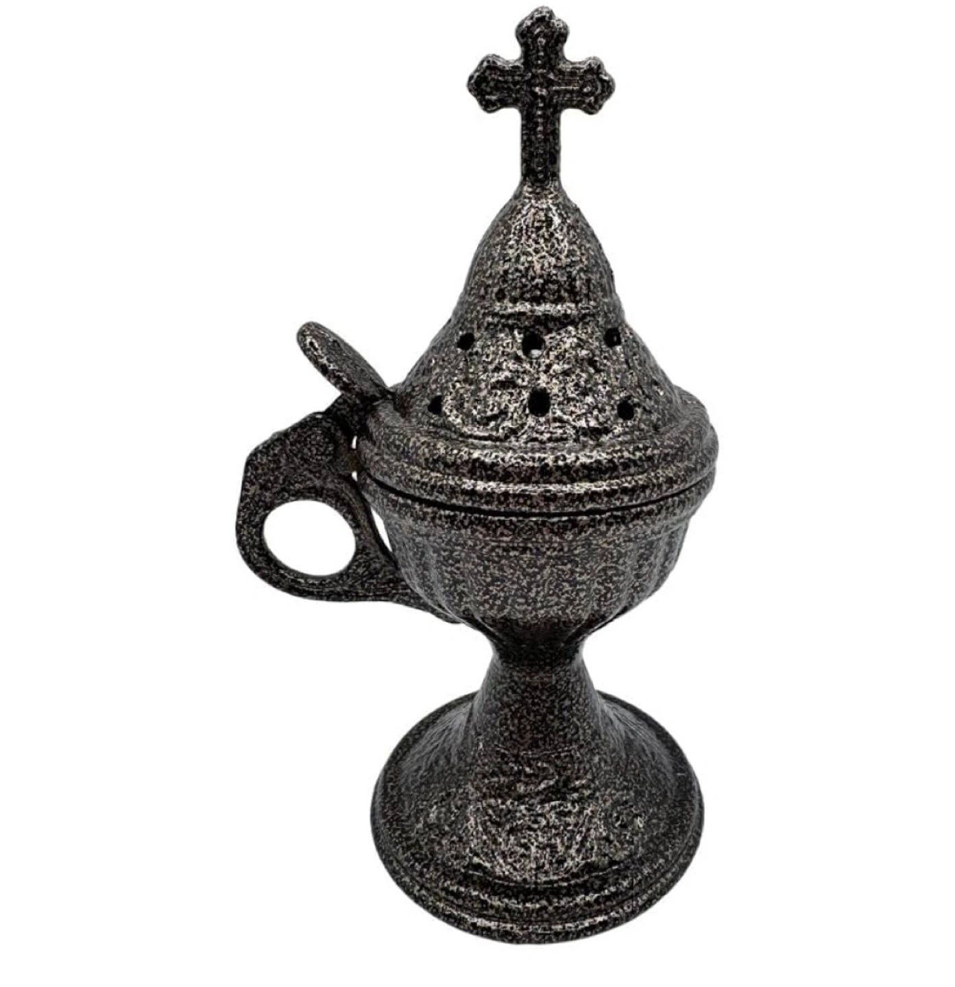 Authentic Livanistiri incense burner used in Greek Orthodox rituals — a sacred item designed for reverent home or church use.