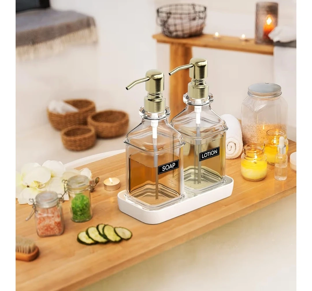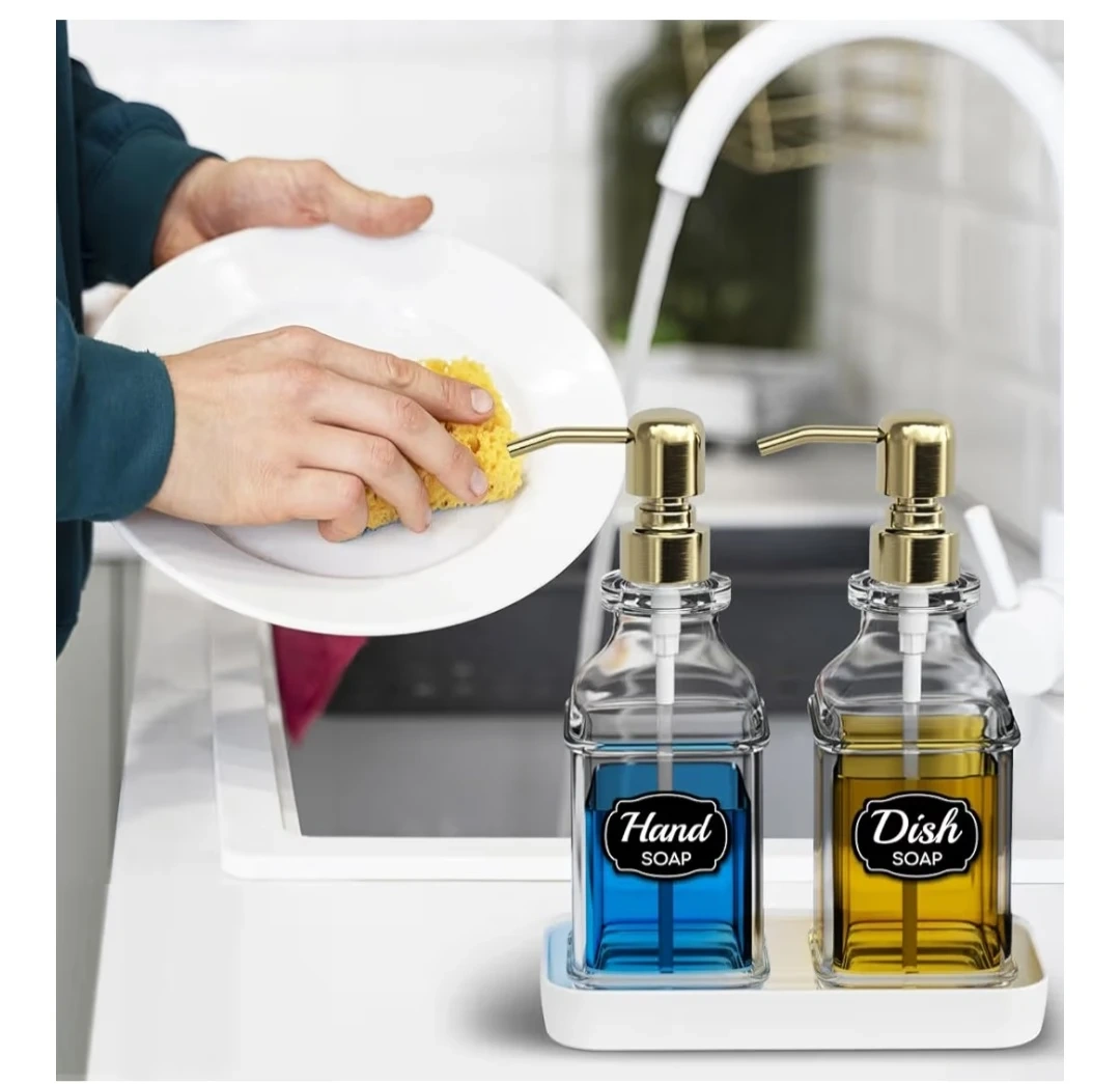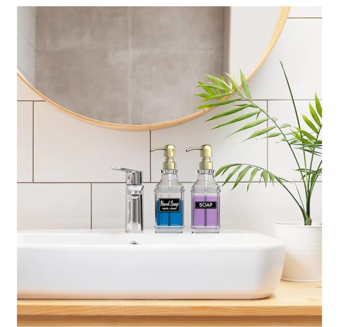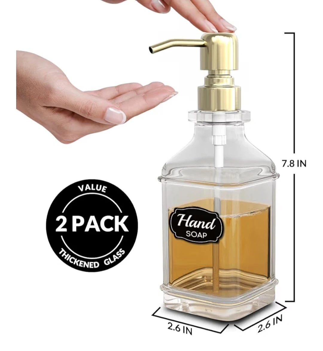 2-Pack Glass Soap Dispensers with Stainless Steel Pumps