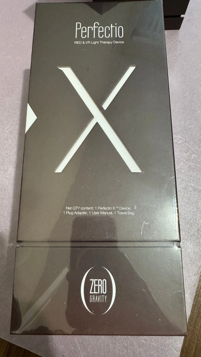 Discover the Perfectio X by Zero Gravity, a red and infrared light therapy device designed to rejuvenate your skin. The box includes the Perfectio X device, plug adapter, user manual, and travel bag. This item is in new condition. Key features: * Red & IR Light Therapy * Complete set with all accessories * New condition. And yes, if the ad's still up, it's still available, so no need to ask!