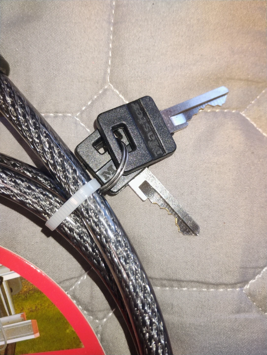 Selling a Master Lock Keyed Cable Lock, perfect for securing your belongings. It's 6ft (1.8m) long and comes with 2 keys included. Great for bikes, ladders, toolboxes, and more