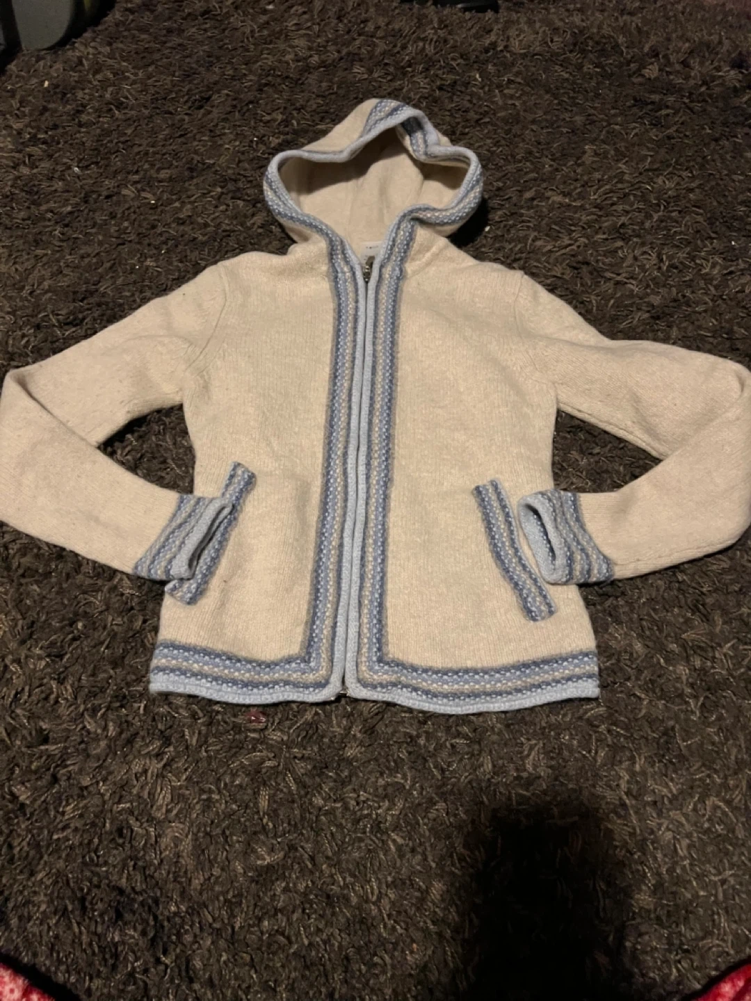 Selling a cozy Patagonia lambswool hooded jacket in women's size XS. It's made of 100% lambswool, exclusive of trim. Perfect for staying warm and stylish!