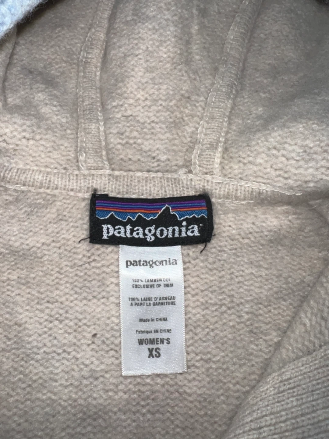 Selling a cozy Patagonia lambswool hooded jacket in women's size XS. It's made of 100% lambswool, exclusive of trim. Perfect for staying warm and stylish!