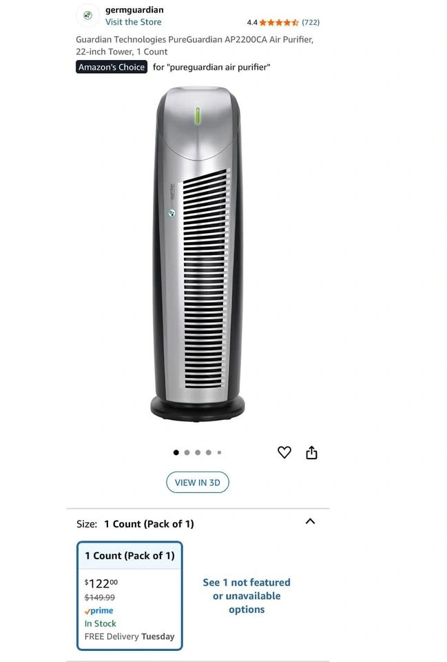 PureGuardian Air Purifier 22 inch tower – Used for 1 year in excellent condition.
