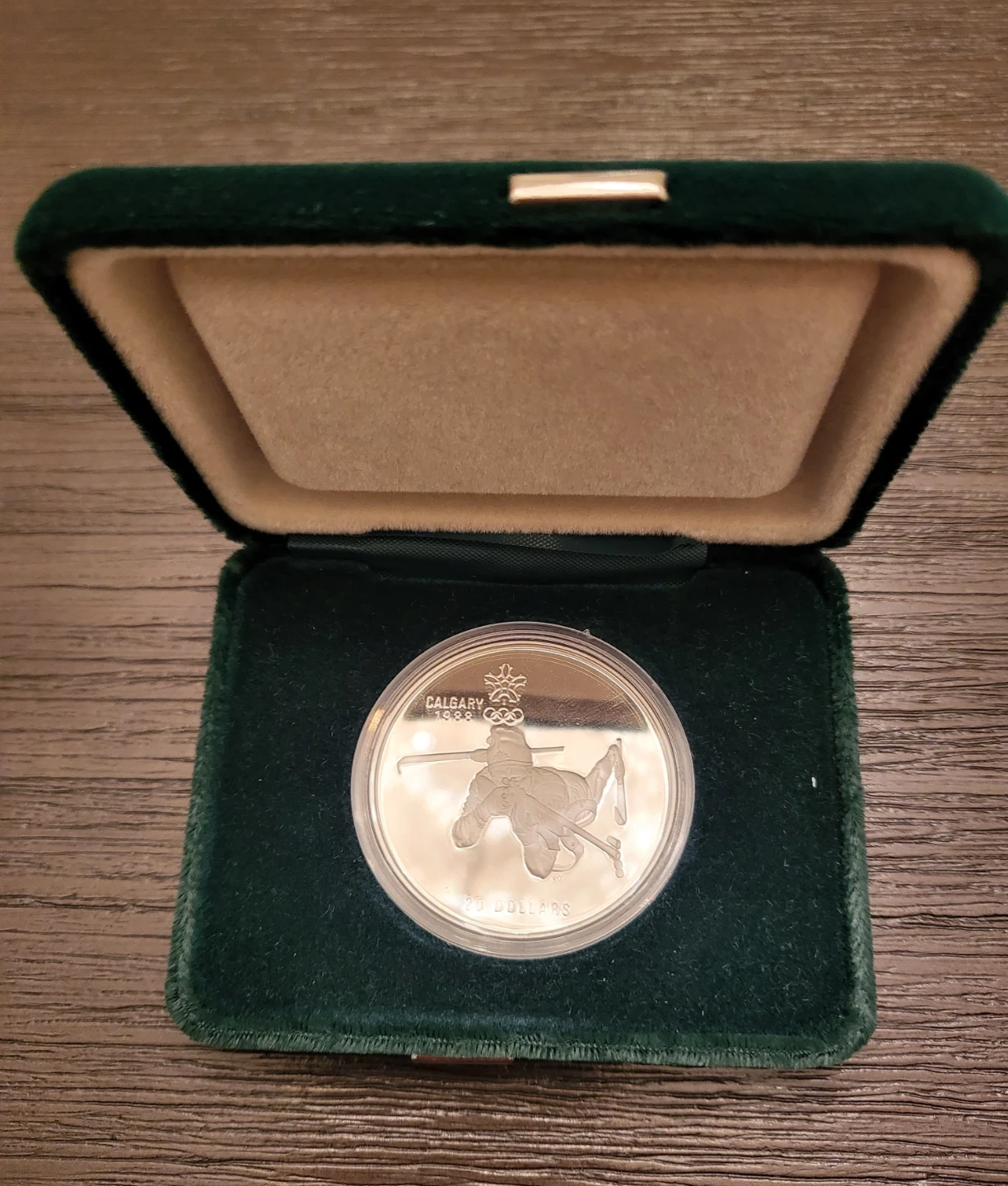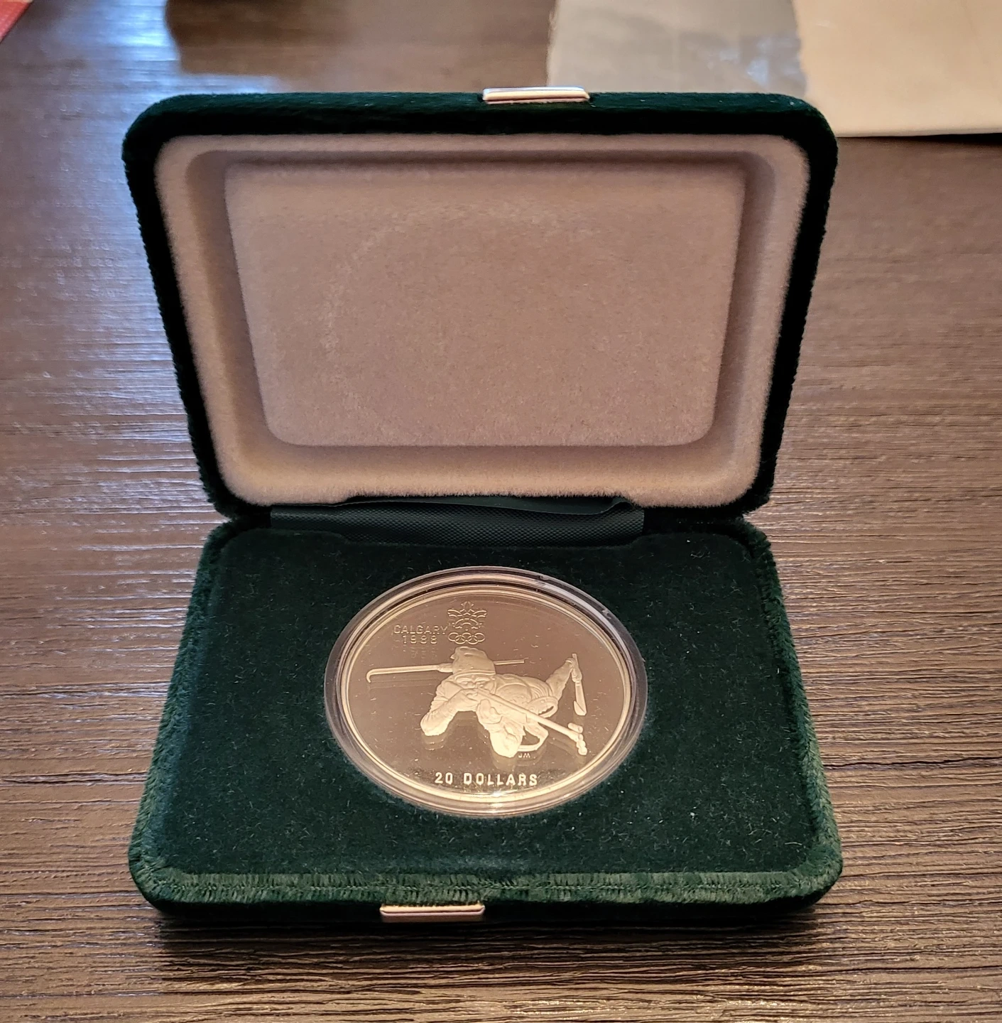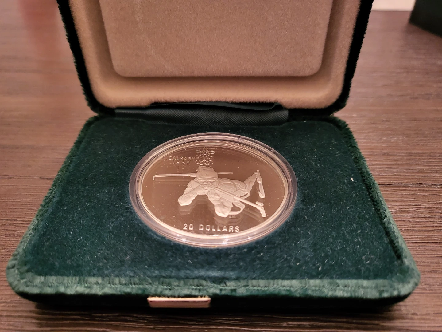Selling a Calgary 1988 Winter Olympics commemorative $20 coin. It comes in its original presentation box, which is in excellent condition. This is the biathlon coin.