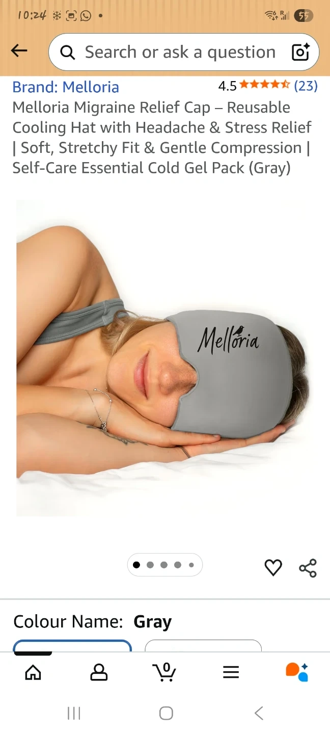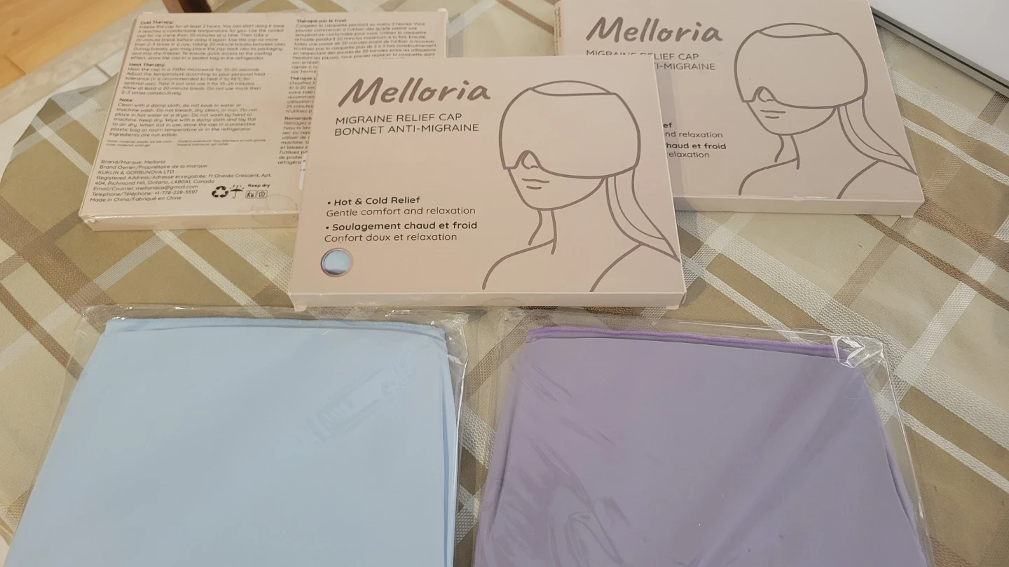 I'm selling a brand new Melloria Migraine Relief Cap! It's lavender-coloured and provides hot and cold relief for gentle comfort and relaxation.