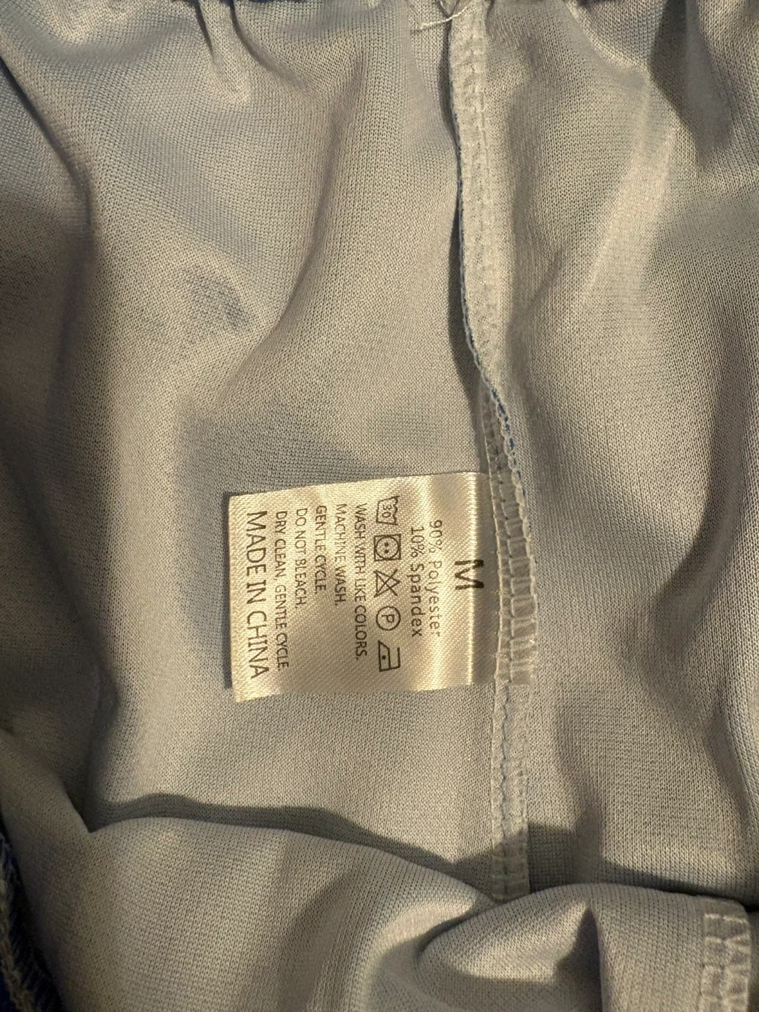Selling a blue and gold outfit in size medium. The material is 90% polyester and 10% spandex.