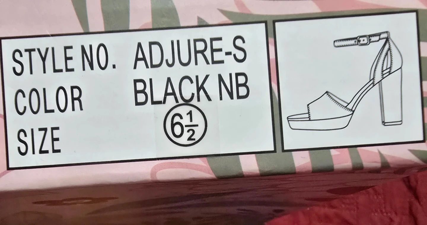 Selling a pair of black heels, style number AdJure-S, in size 6.5. They come in the original box