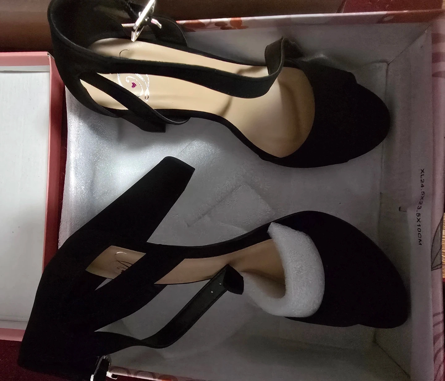 Zapatos de tacón alto color negro, con tiras cruzadas.