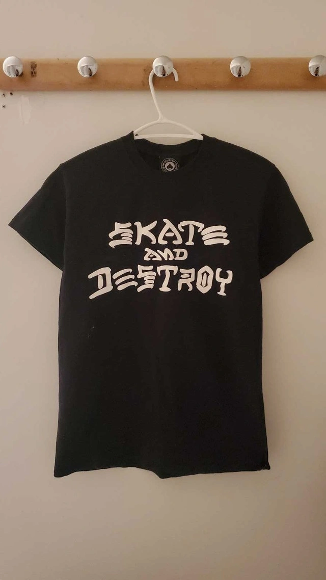 Used Thrasher Skate and Destroy T-shirt.