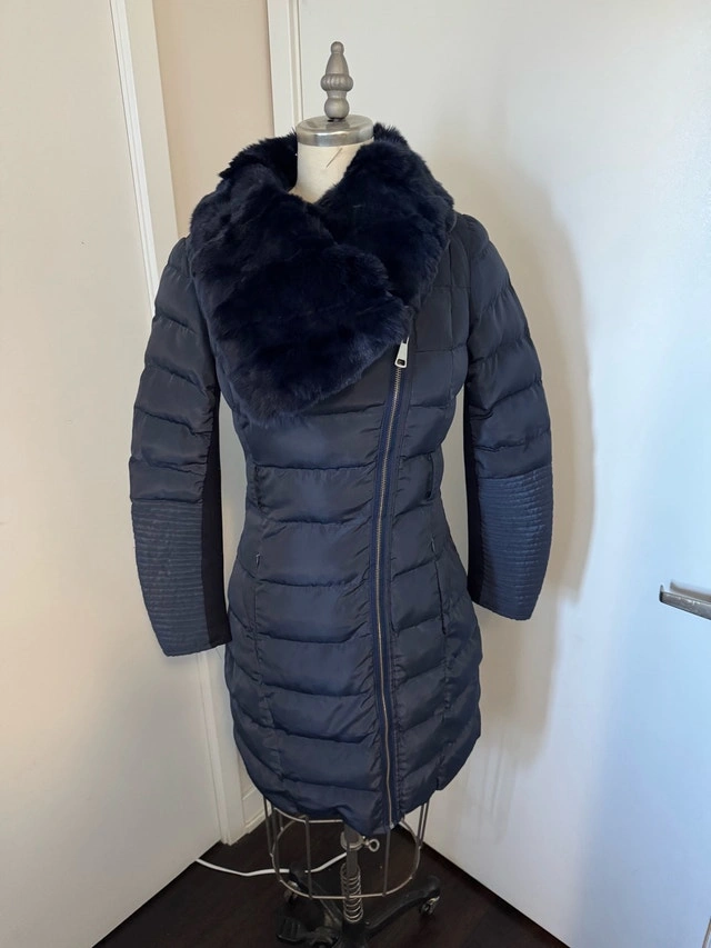 Beautiful Ladies Size Small Winter Jacket - Like New Now asking $20 worn 3-4 times like new, Navy Blue.