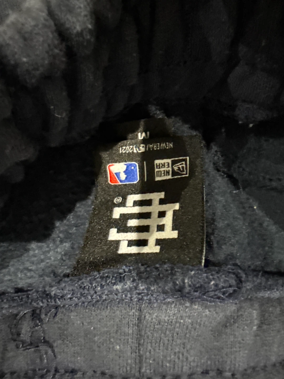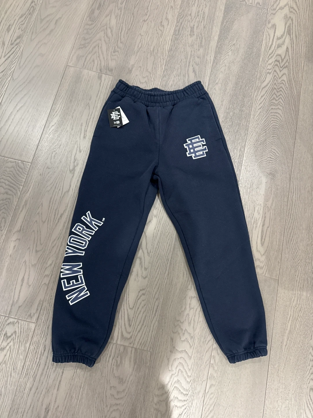 Selling a pair of Eric Emanuel x New Era Yankees sweatpants in size medium! These navy sweatpants feature the iconic Yankees logo and 'New York' printed on the leg. Great for showing off your team spirit in style