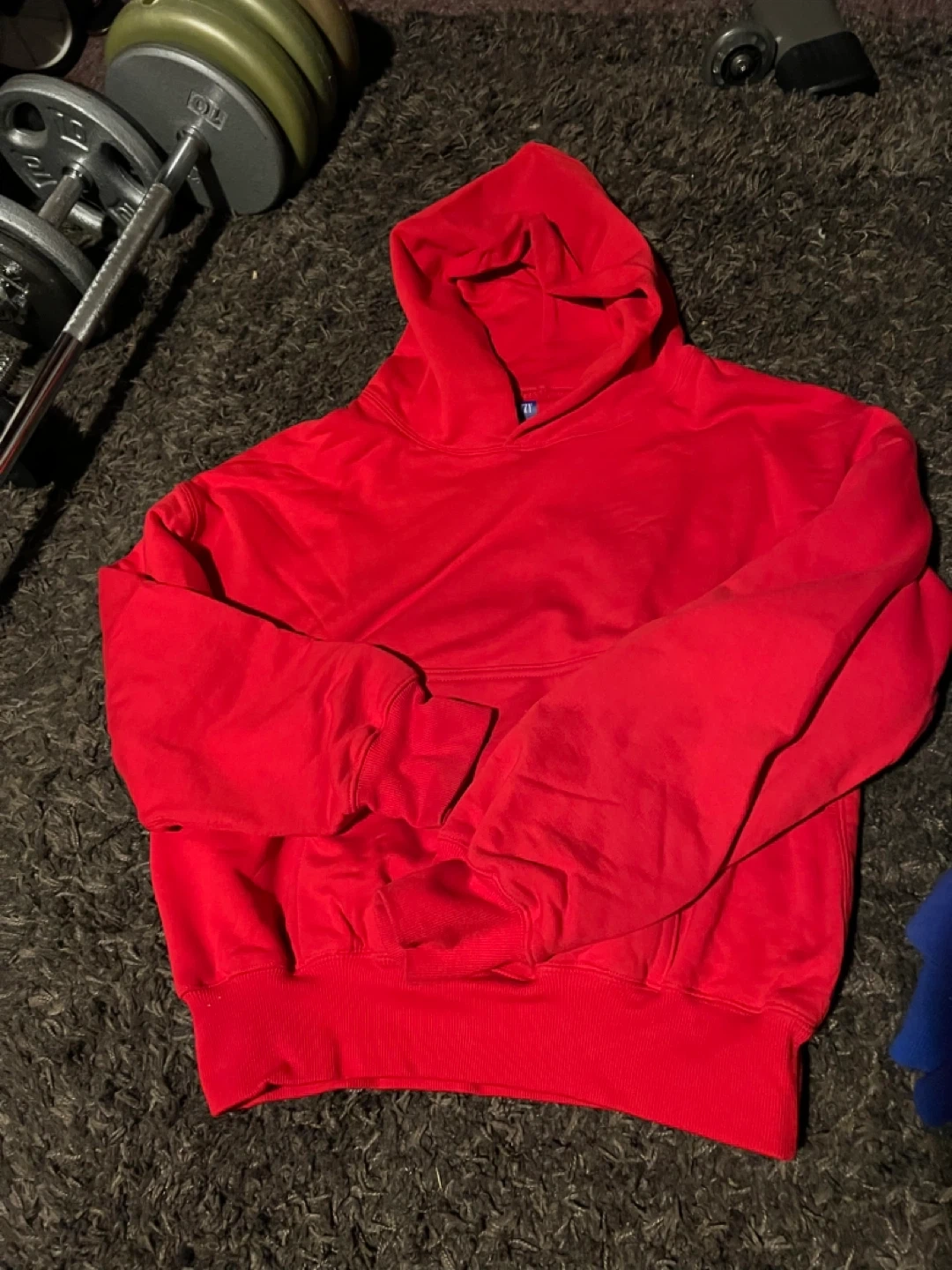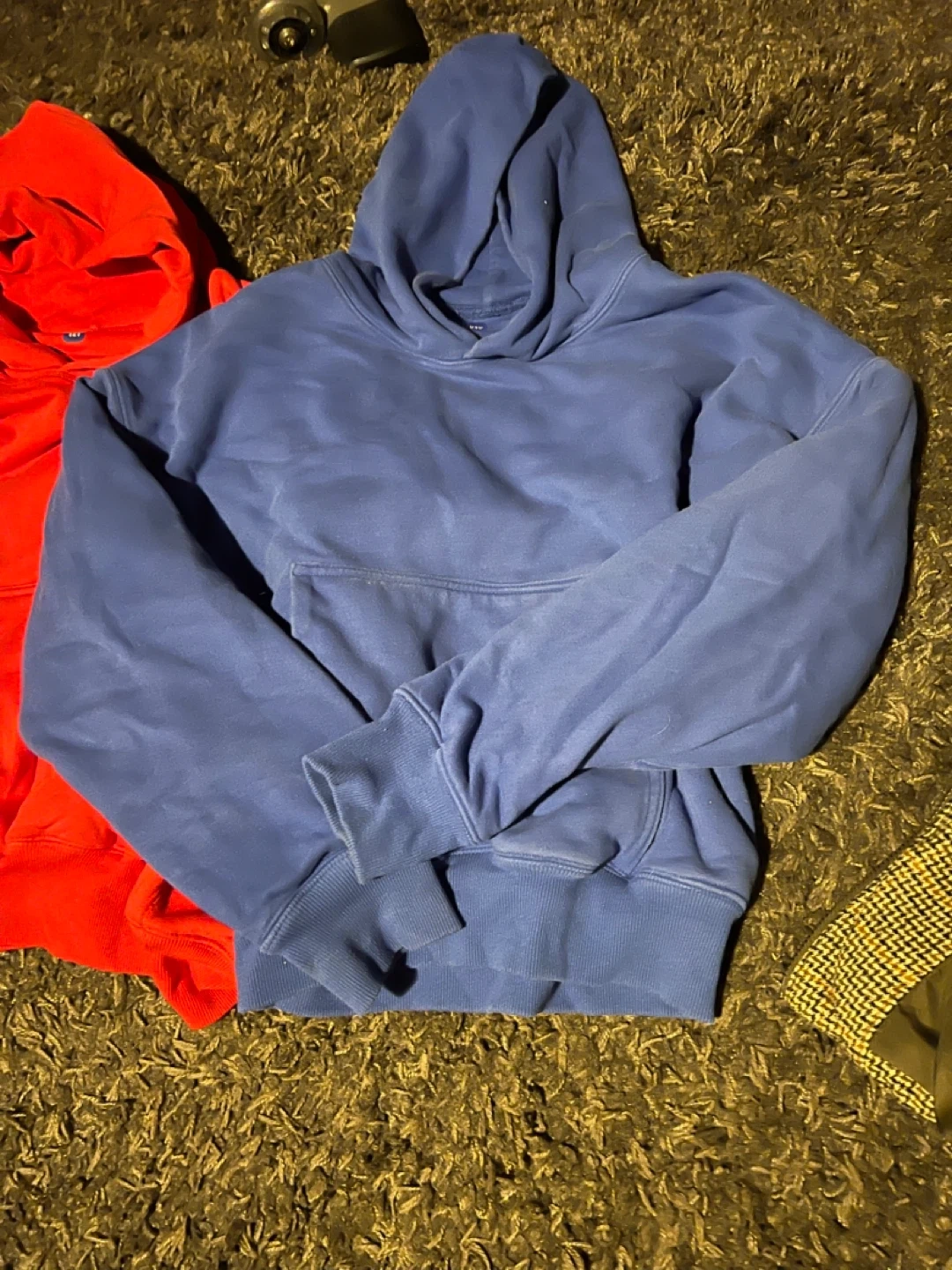 Selling a blue YZY hoodie. It's in good condition and ready for a new owner. Perfect for staying cozy! Thick hoodie