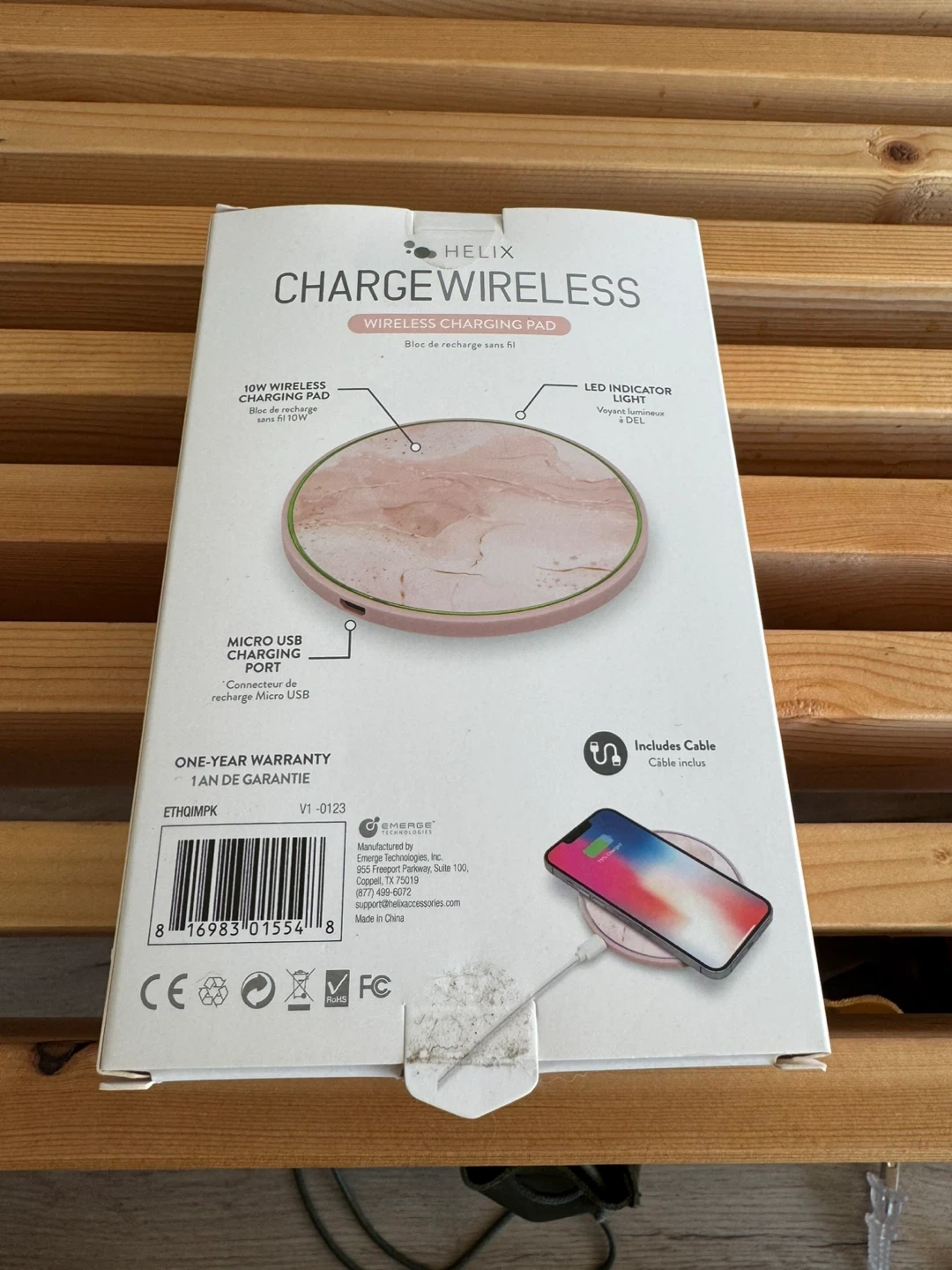 Selling a brand new Helix Charge Wireless Charging Pad! This pad offers 10W fast wireless charging and features an LED indicator light for convenience. It also includes a cable. Perfect for keeping your devices charged without the clutter of cords