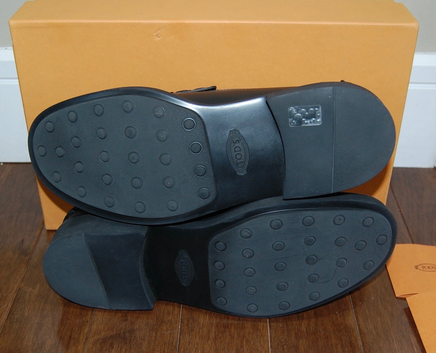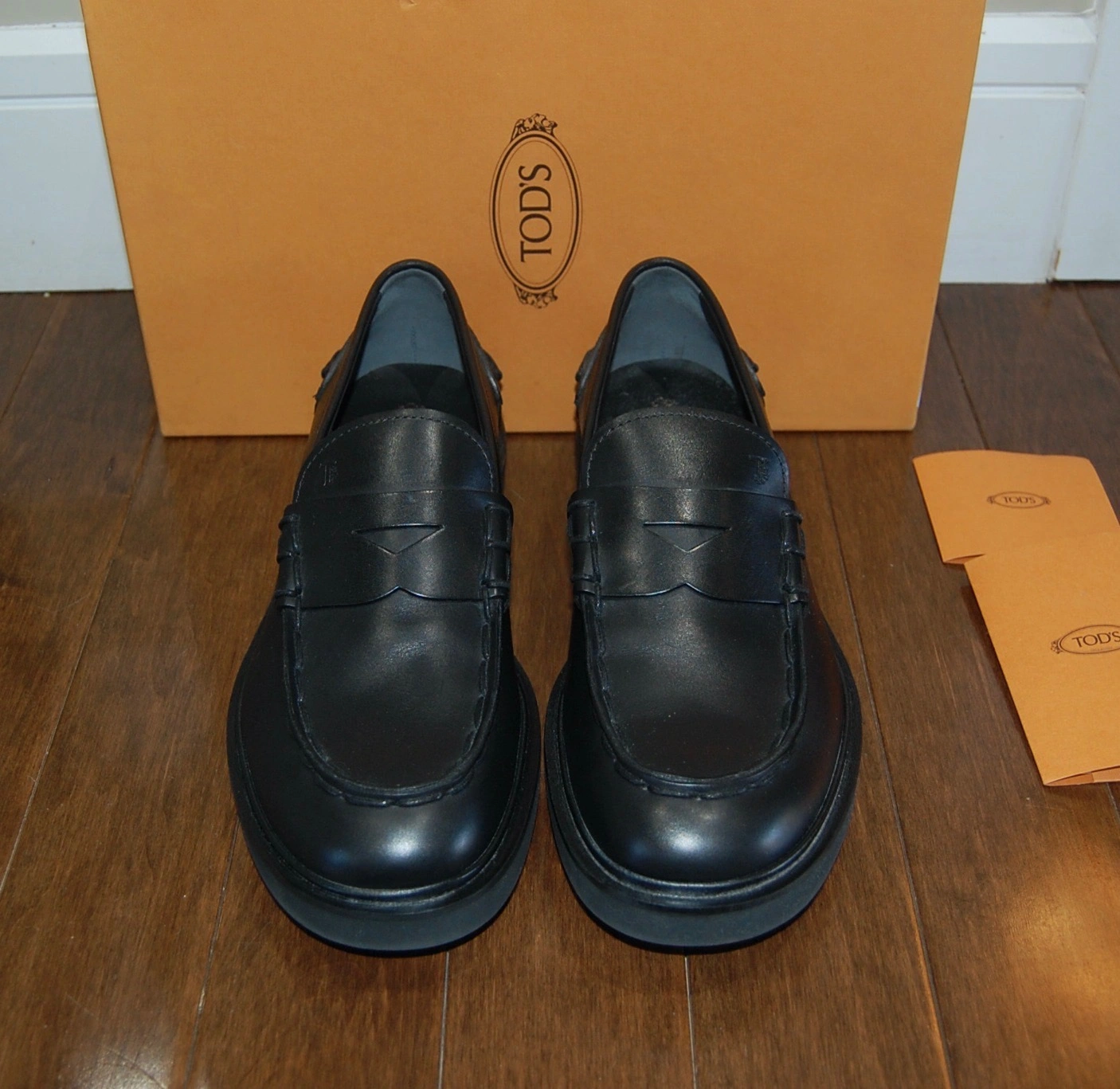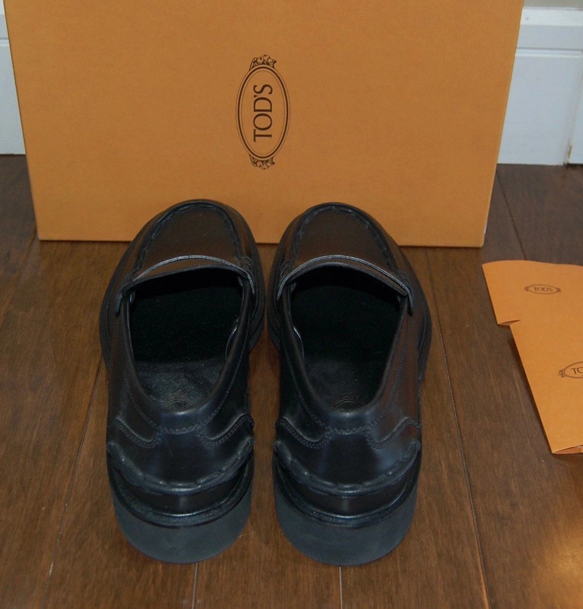 Selling a pair of Tod's black leather loafers! They are brand new and comes with the original box and documents. Size UK 9.5 = US 10.5 but fits US 11 as the length of the insole is 11.5" or 28.5 cm
