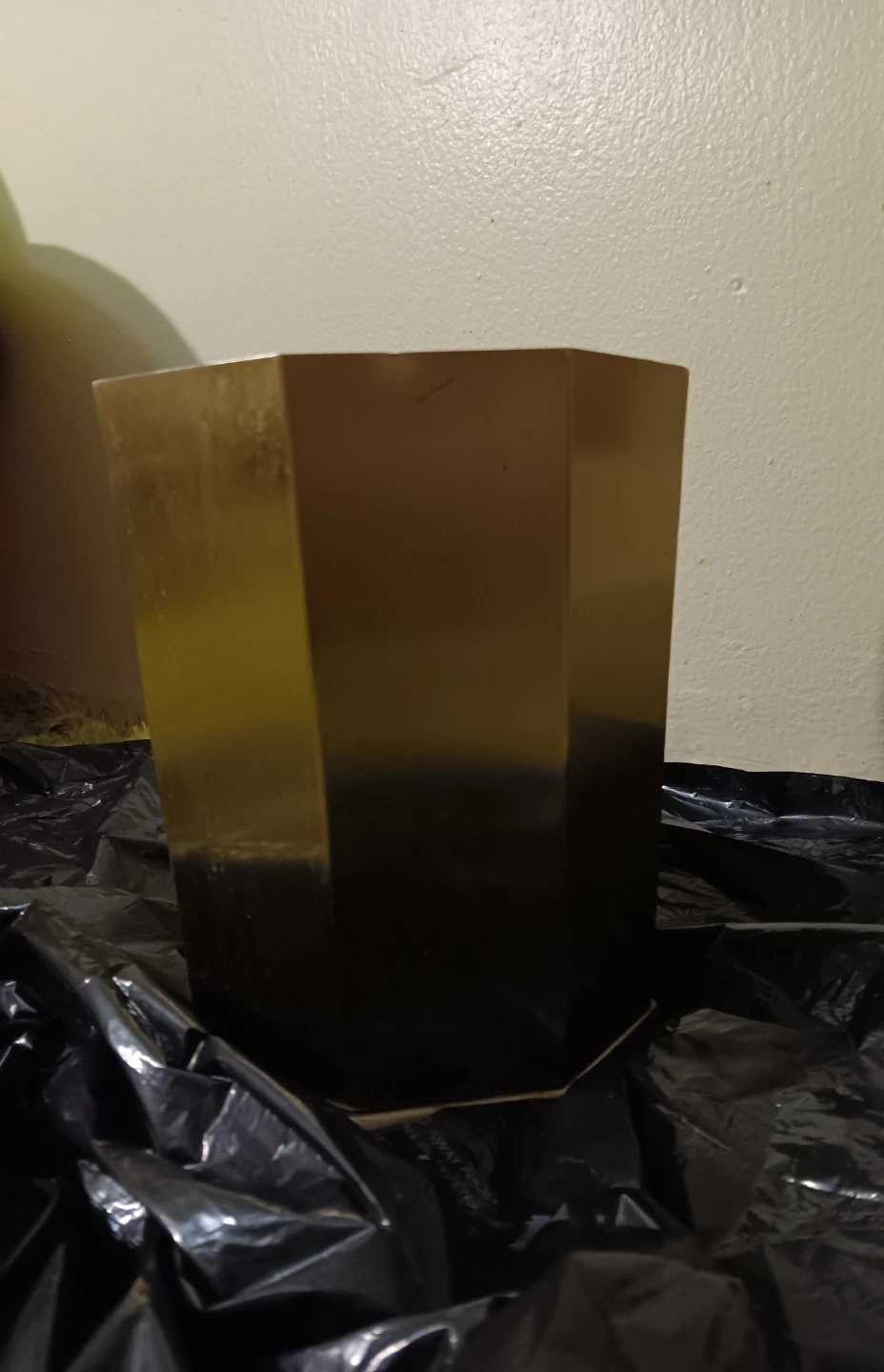 Selling a unique gold and black decorative planter! It has a cool, modern look that would look great in any room. It's in good condition and ready to add some style to your space
