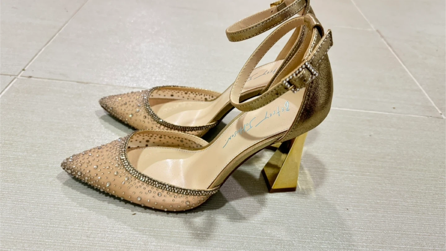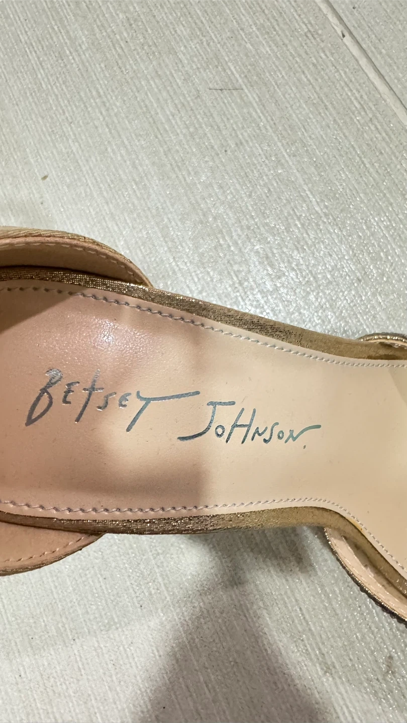 Selling a pair of Betsey Johnson heels in a lovely gold colour! They're a size 7 and feature a unique heel design. Perfect for adding a touch of sparkle to any outfit!