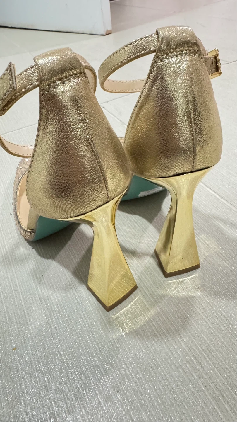 Selling a pair of Betsey Johnson heels in a lovely gold colour! They're a size 7 and feature a unique heel design. Perfect for adding a touch of sparkle to any outfit!